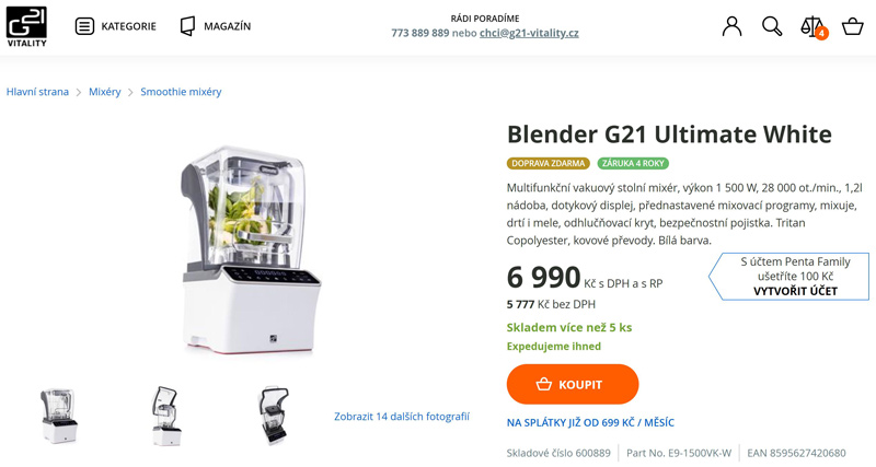 Další výhodou členství v klubu Penta Family a vytvoření zákaznického účtu je nakupování za nižší ceny v našich e-shopech G21 Vitality a Penta CZ. Ty máme u převážné většiny produktů a chybí pouze výjimečně, třeba když už je cena produktu tak nízko, že pro další snížení bychom museli vykopat jámu. Nebo když je u produktu doprava zdarma, dárek či jiná akce.