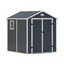 Antracitový zahradní domek G21 GAH 706 je vyroben z kvalitního profilovaného ocelového plechu tloušťky 0,25 – 0,30 mm. Je pozinkovaný a má práškový nástřik. Konstrukce je rovněž ocelová a pozinkovaná. Je ideální pro celoroční uskladnění zahradního nářadí.