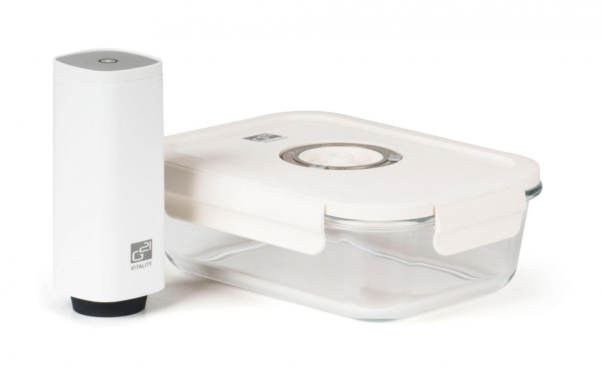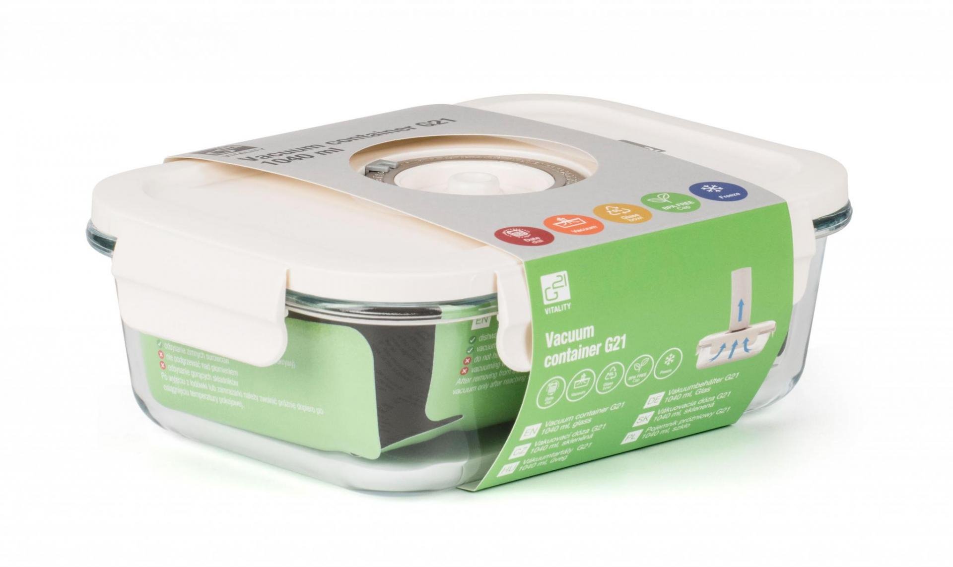Pro pohodlné a snadné vakuování čerstvých i hotových potravin doporučujeme vynikající vakuovací dózu G21 s objemem 1 040 ml. Prodlouží trvanlivost potravin, zachová jim čerstvost i plnou chuť a vůni a především všechny zdraví prospěšné látky. Velkou výhodou této dózy je její široké využití – potraviny v ní po zavakuování můžete uložit do ledničky, zamrazit nebo po sundání víka rovnou zapékat v troubě či horkovzdušné fritéze.