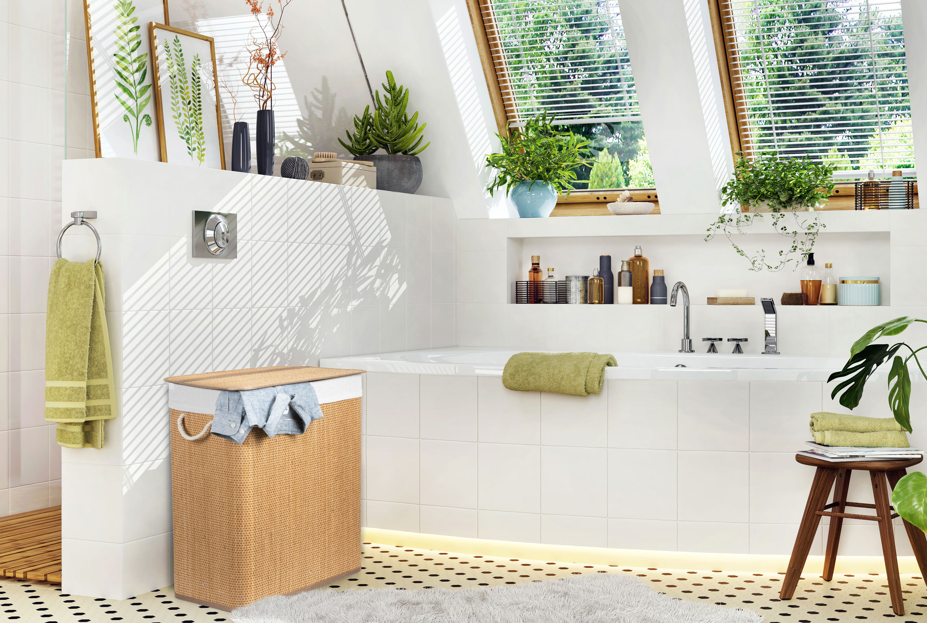 Jak vybrat nejlepší koš na špinavé prádlo? Co se materiálu koše týče, doporučujeme jednoznačně bambus. Je odolný vůči vlhkosti, takže jej můžete bez obav umístit do koupelny nebo servisní místnosti s pračkou. Zároveň je i vizuálně velmi příjemný – kombinace přírodního materiálu a barevně sladěné vložce a držadlům evokuje pocit čistoty, navíc se i hodí k jakémukoliv interiéru.