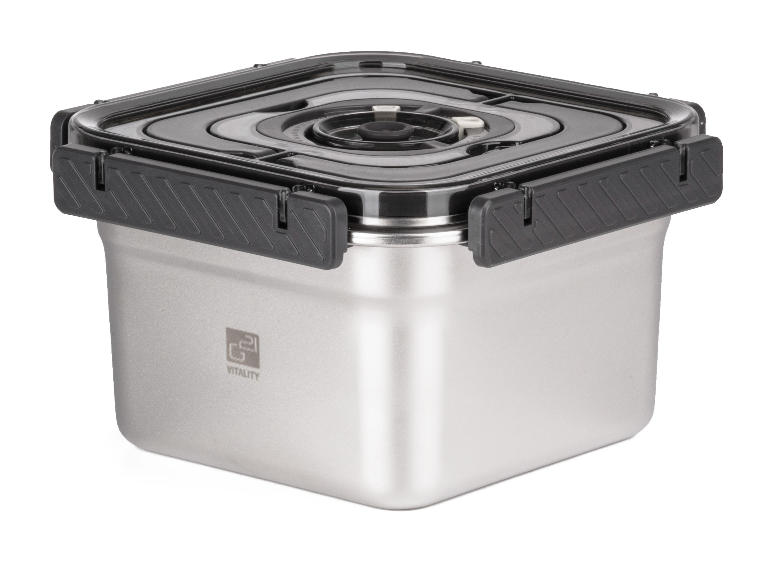 Vakuováním výrazně prodlužujete trvanlivost potravin, zachováváte jejich chuť, vůni i nutriční hodnoty. Nerezová dóza je kompatibilní se všemi vakuovačkami G21. Vakuování minimalizuje kontakt potravin se vzduchem, takže zpomaluje oxidaci a zamezuje růstu bakterií a plísní. Díky tomu si potraviny uchovávají svou přirozenou chuť, texturu i živiny mnohem déle než při běžném skladování.
