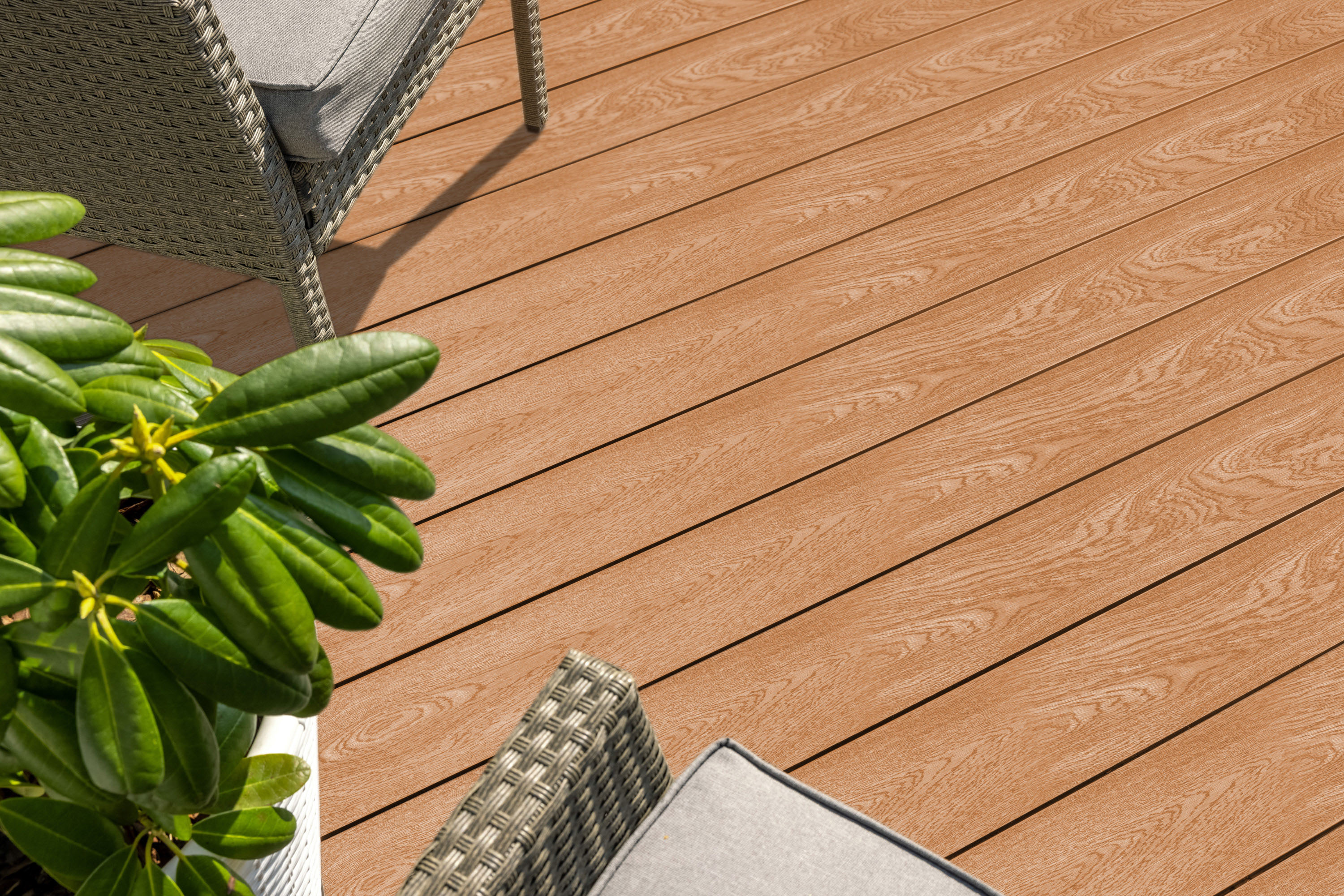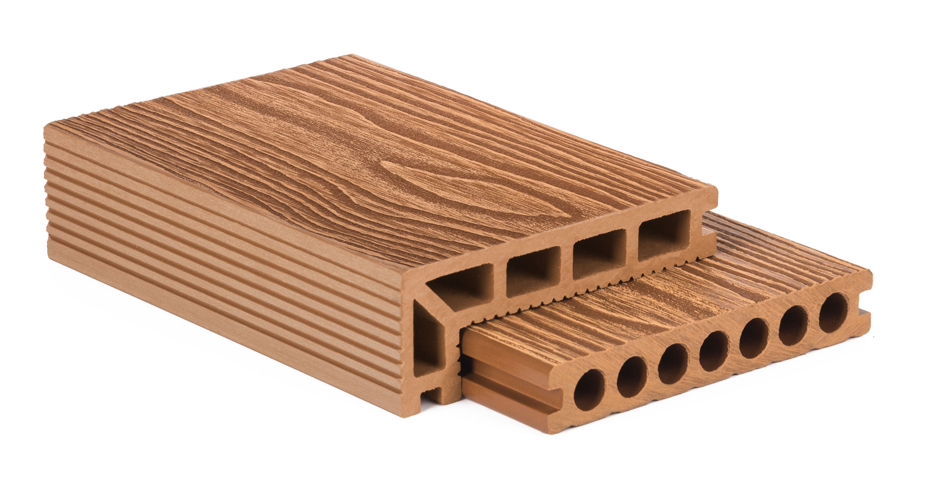 Materiál WPC (Wood plastic components) je směs tvořená z 60 % z dřevitých vláken a ze 40 % z plastu. S pomocí vlivu tlaku a teploty (extrudace) vzniká odolný a bezúdržbový materiál, který je praktický a po všech stránkách vysoce užitkový.