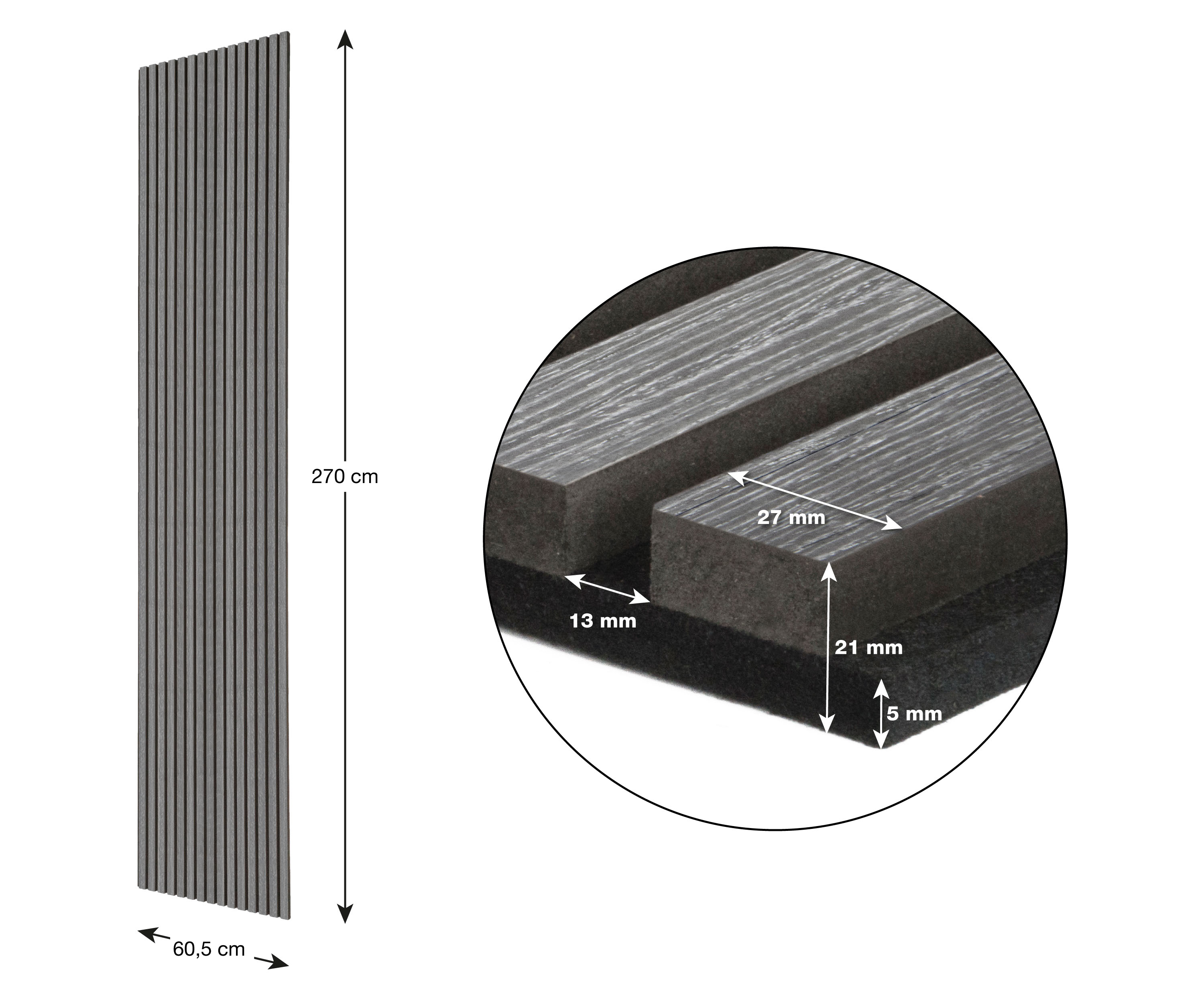 Akustický panel G21 270x60,5x2,1 cm, tmavě šedý dub