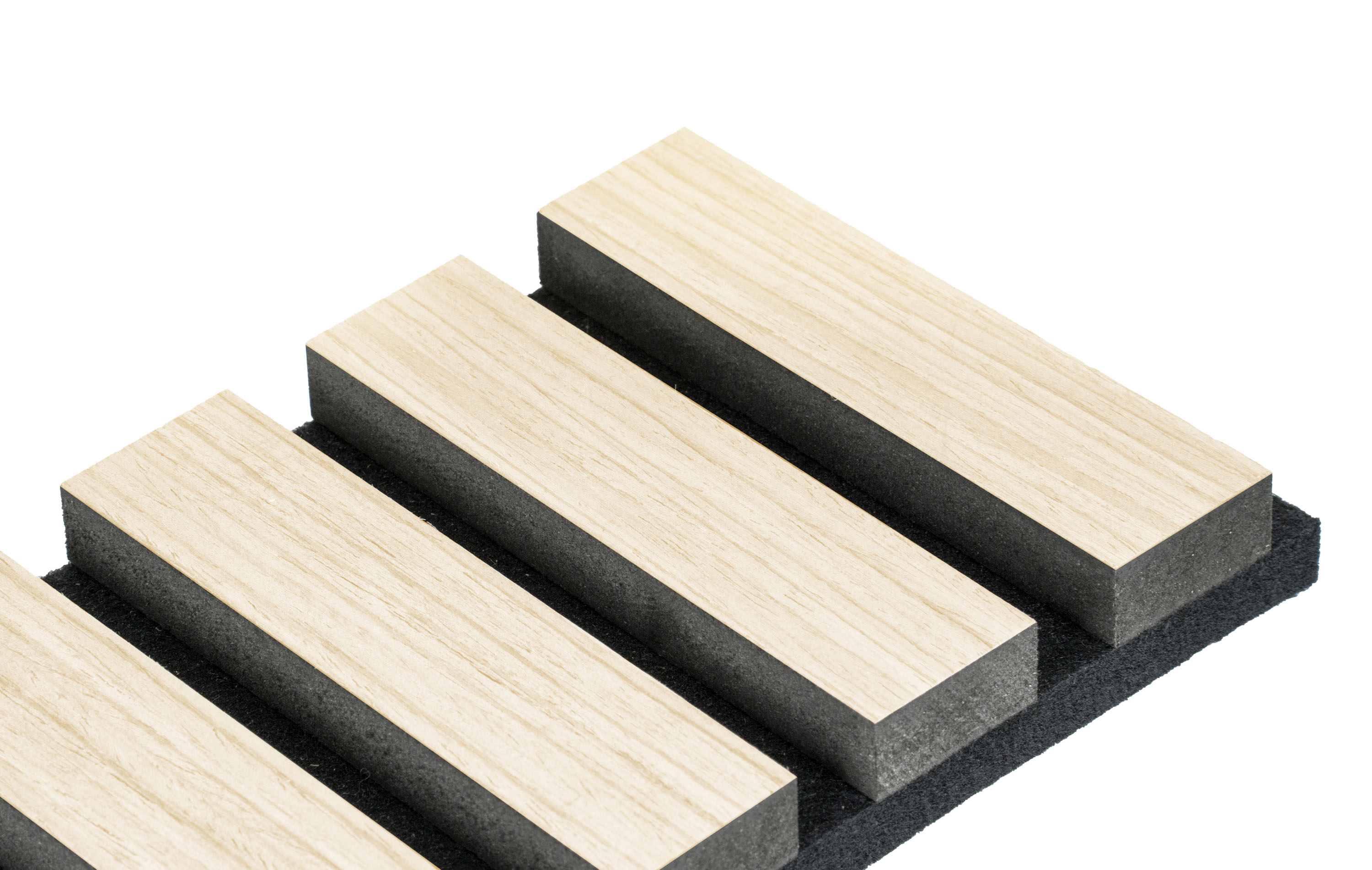 Designový interiérový akustický nástěnný panel pro snížení hluku a zlepšení akustiky v domácnostech i kancelářích. Atraktivní design, snadná montáž, dekor hikora.