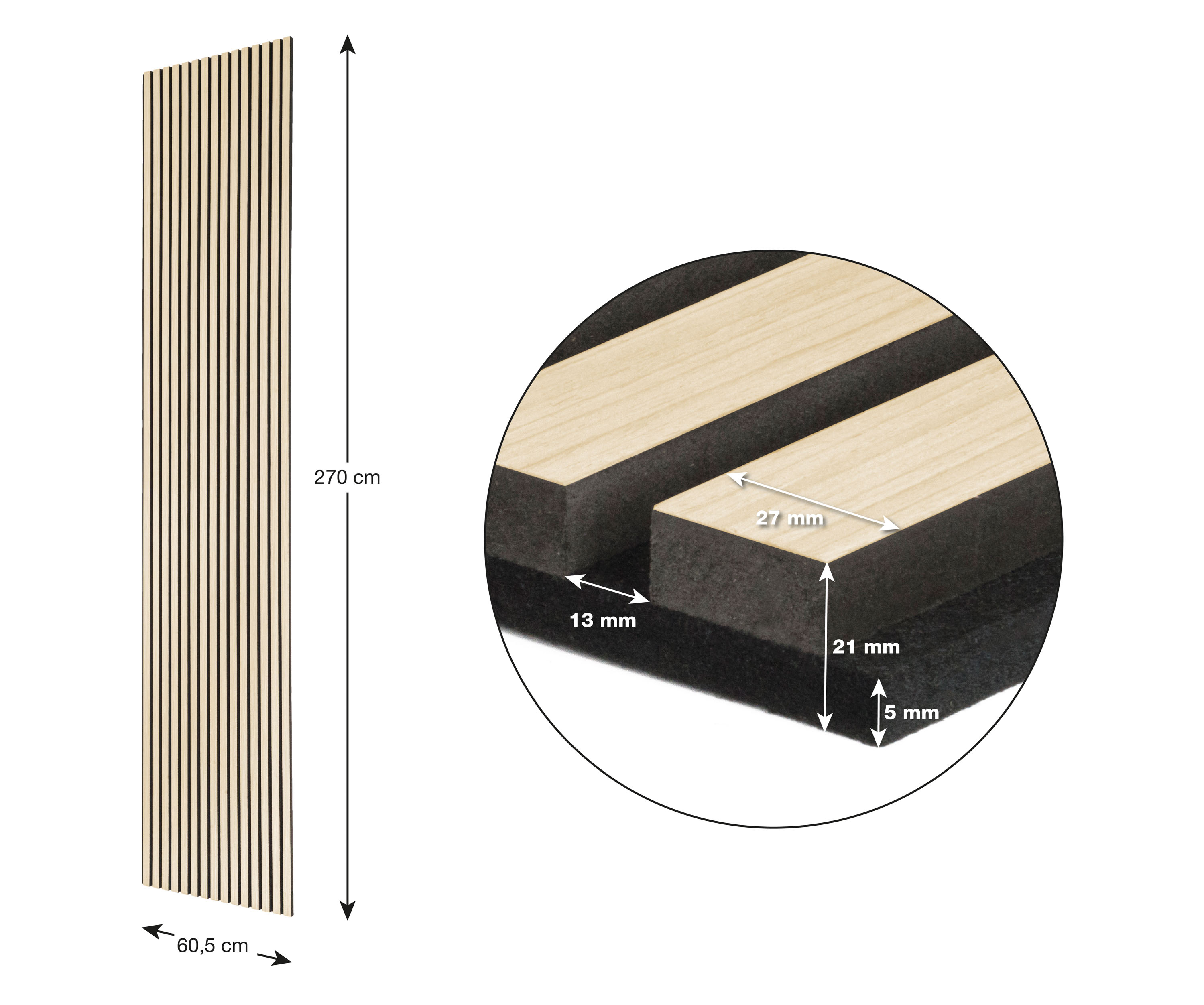 Akustický panel G21 270x60,5x2,1 cm, hikora