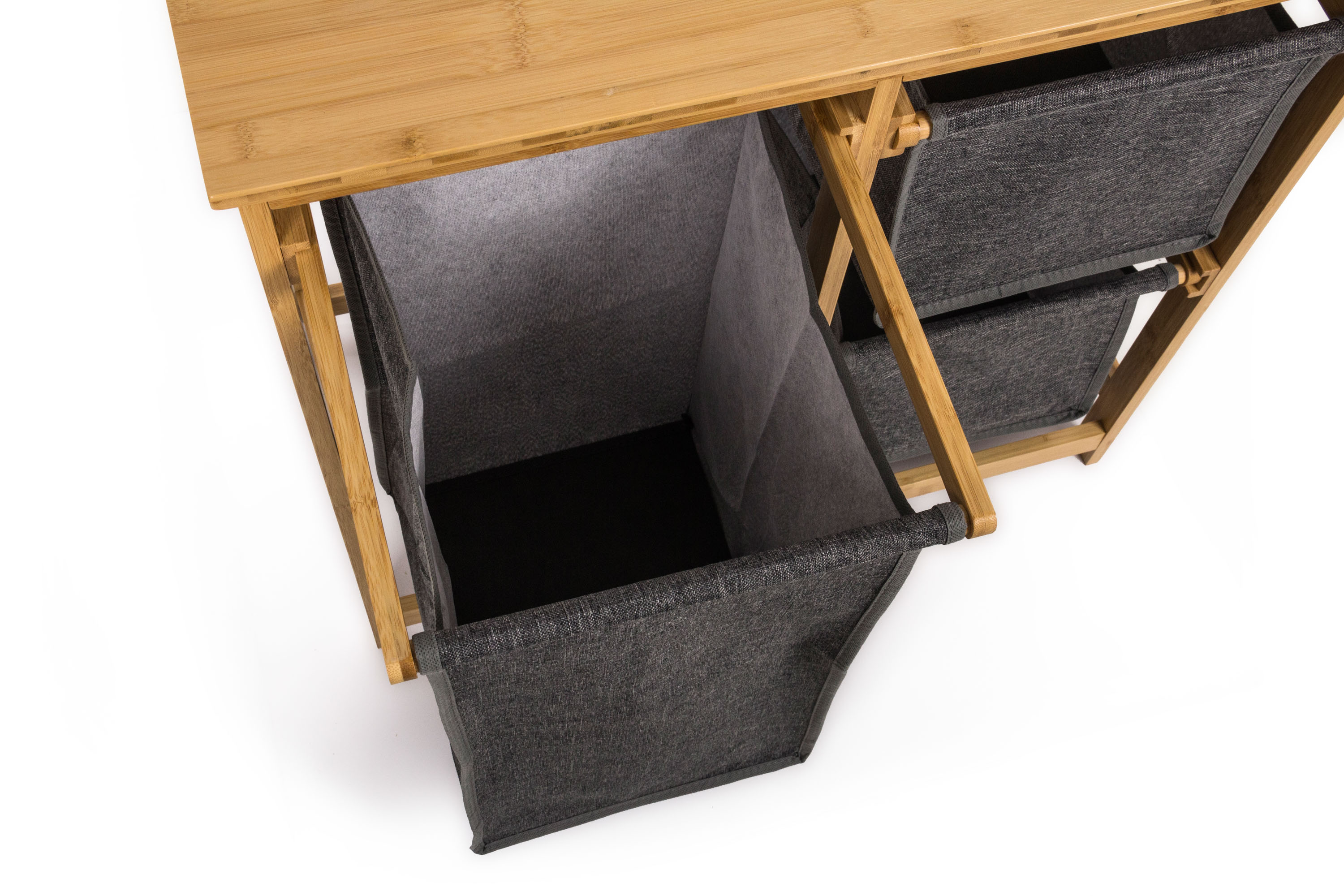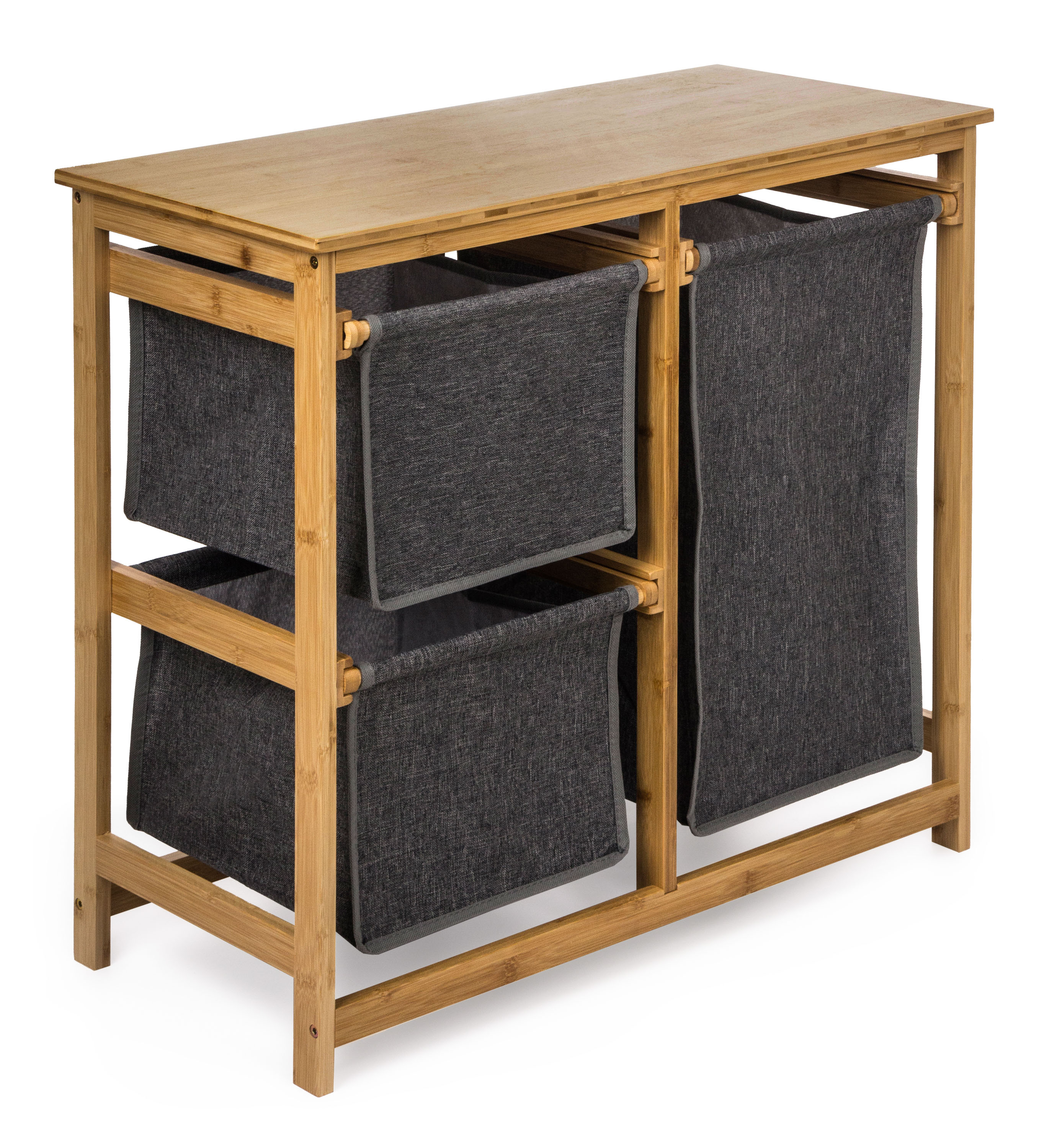 Kam s prádlem, ať už špinavým na vyprání nebo čistým na uložení? Do lehkého a zároveň pevného a stabilního, nenápadného a přitom designově zajímavého bambusového prádelního koše se třemi úložnými výsuvnými boxy. Každý z boxů unese samostatně až 10 kg prádla.