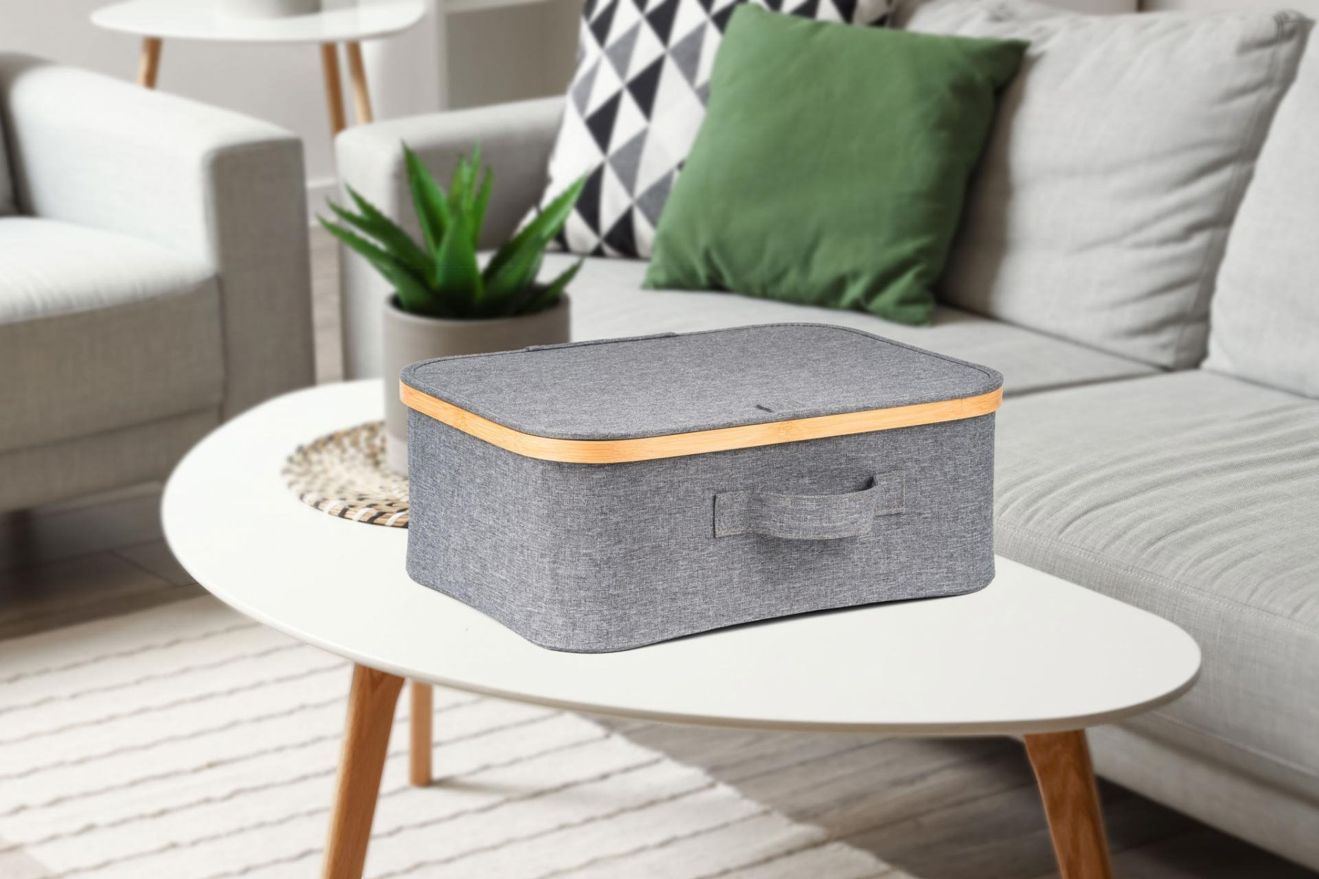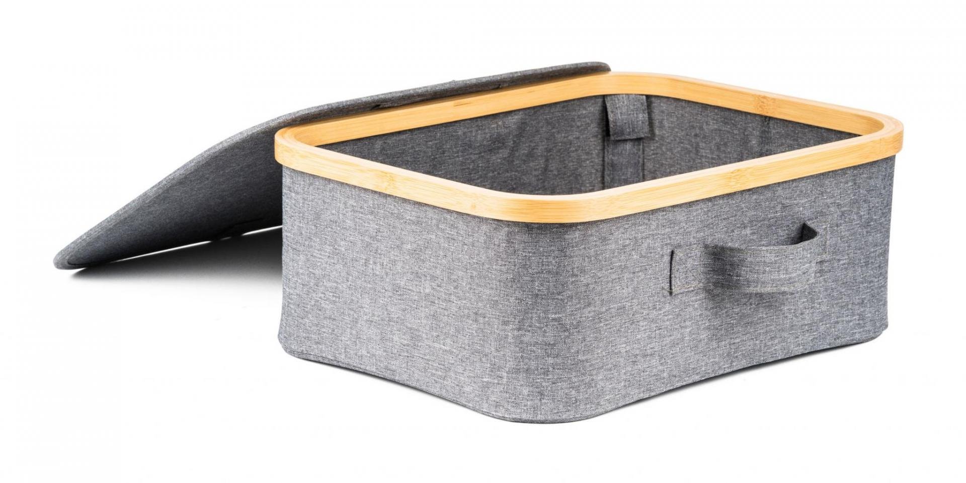 Úložný box G21 40 x 30 x 15 cm, bambusový s víkem, šedý