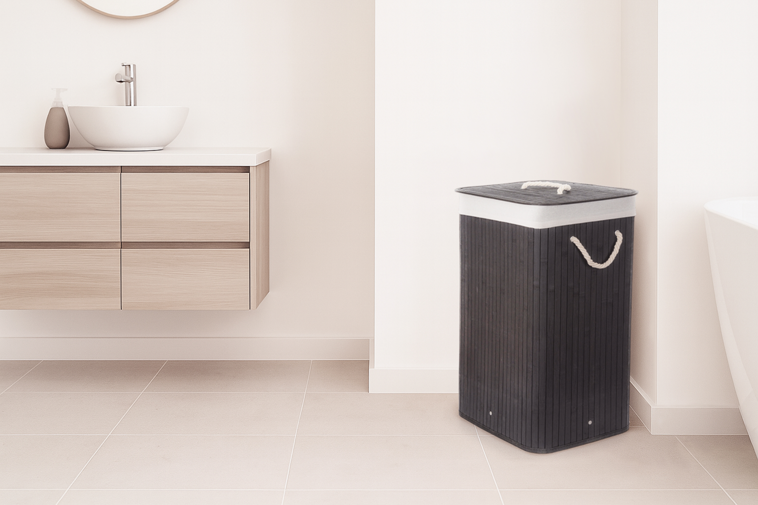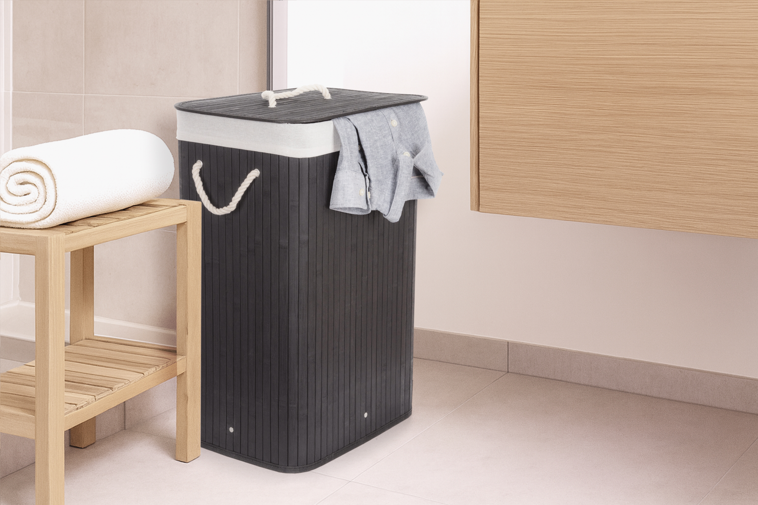 Jak vybrat nejlepší koš na špinavé prádlo? Co se materiálu koše týče, doporučujeme jednoznačně bambus. Je odolný vůči vlhkosti, takže jej můžete bez obav umístit do koupelny nebo servisní místnosti s pračkou. Zároveň je i vizuálně velmi příjemný – kombinace přírodního materiálu a barevně sladěné vložce a držadlům evokuje pocit čistoty, navíc se i hodí k jakémukoliv interiéru.