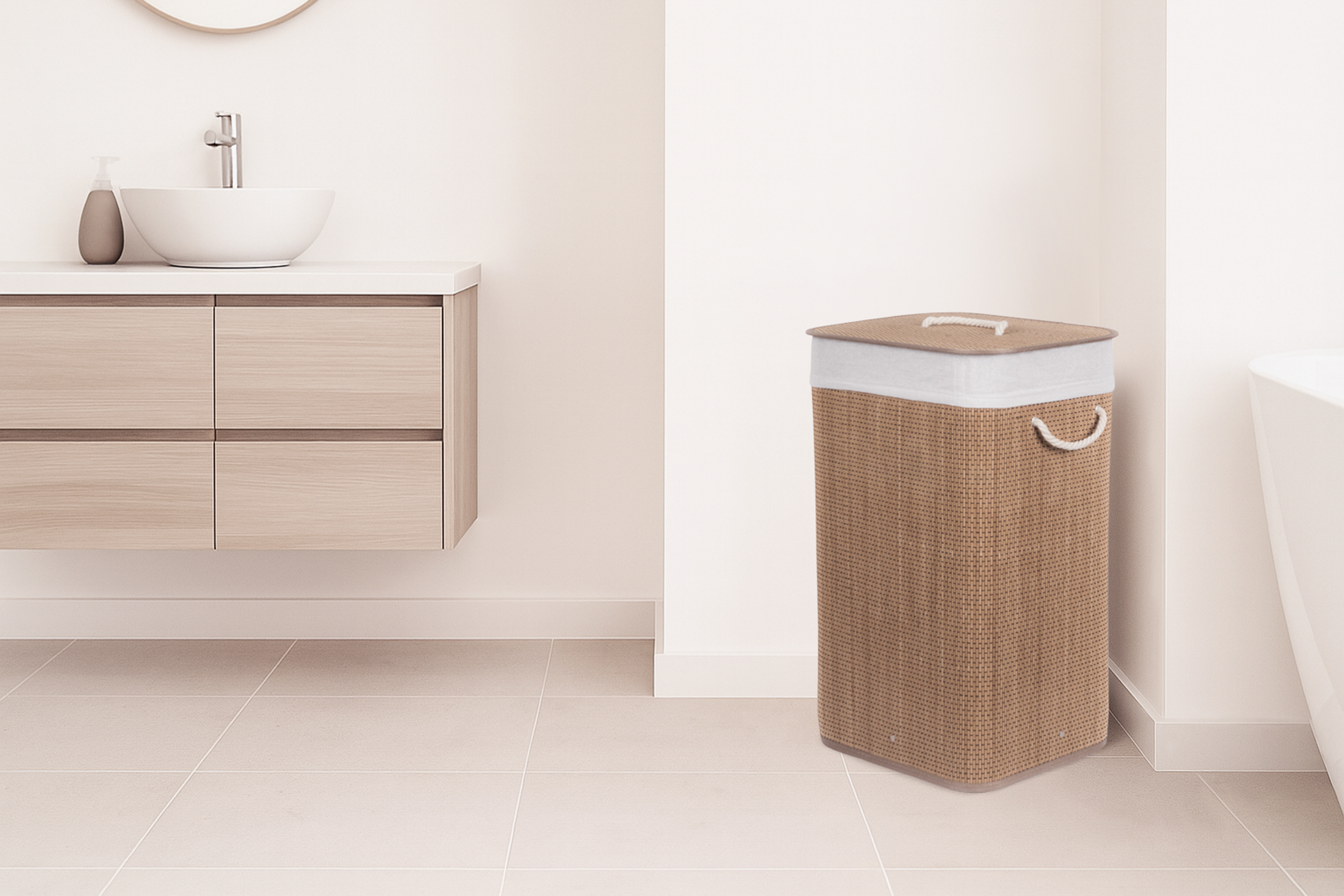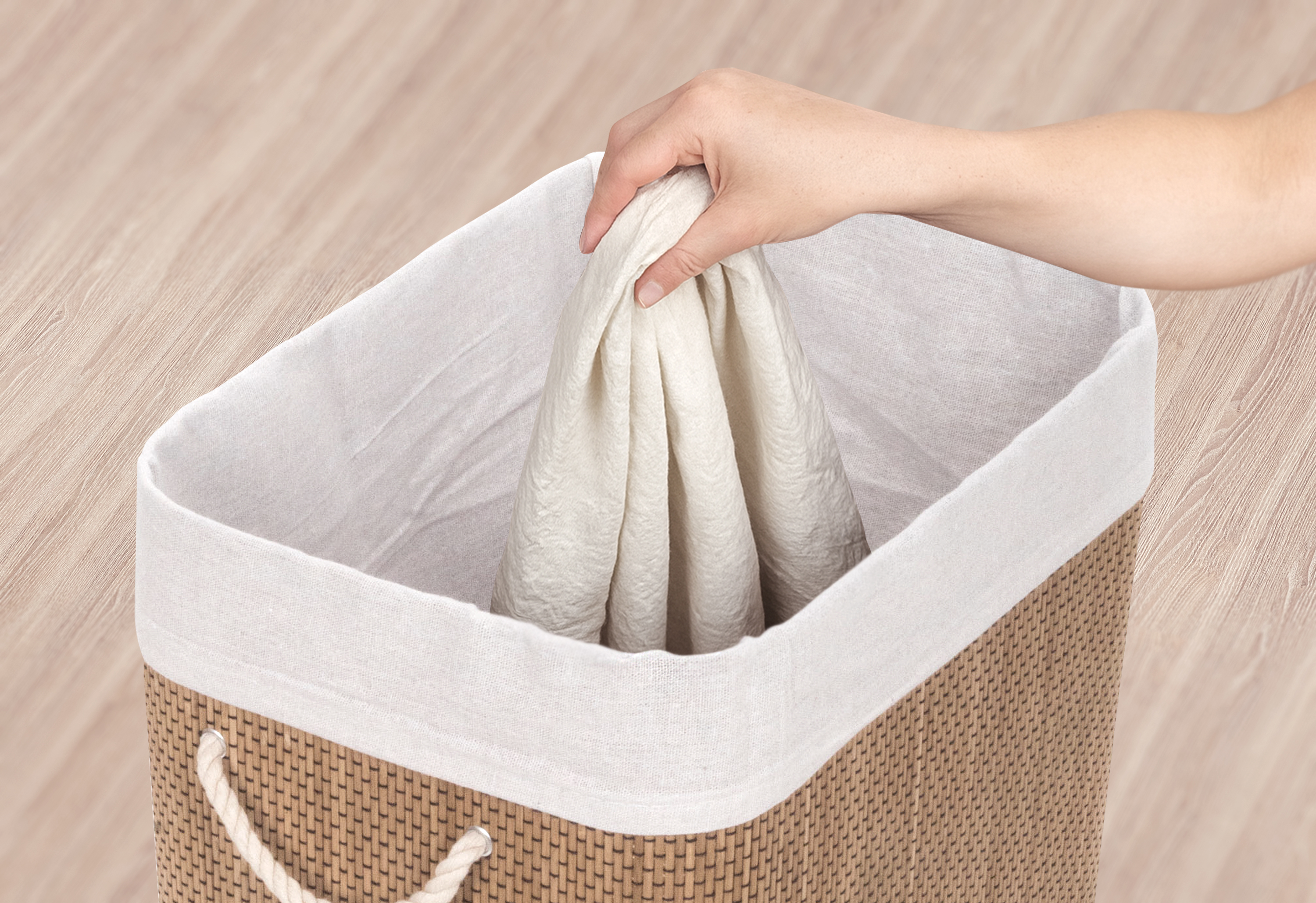 Bambusový koš s pratelnou látkovou vložkou přidává interiéru příjemný přírodní dojem. Jeho jemné a teplé barvy mohou oživit a doplnit jakýkoliv prostor bez ohledu na jeho styl – skvěle ladí s rustikálním i moderním nebo minimalistickým interiérem, přizpůsobí se stylu vašeho domova.