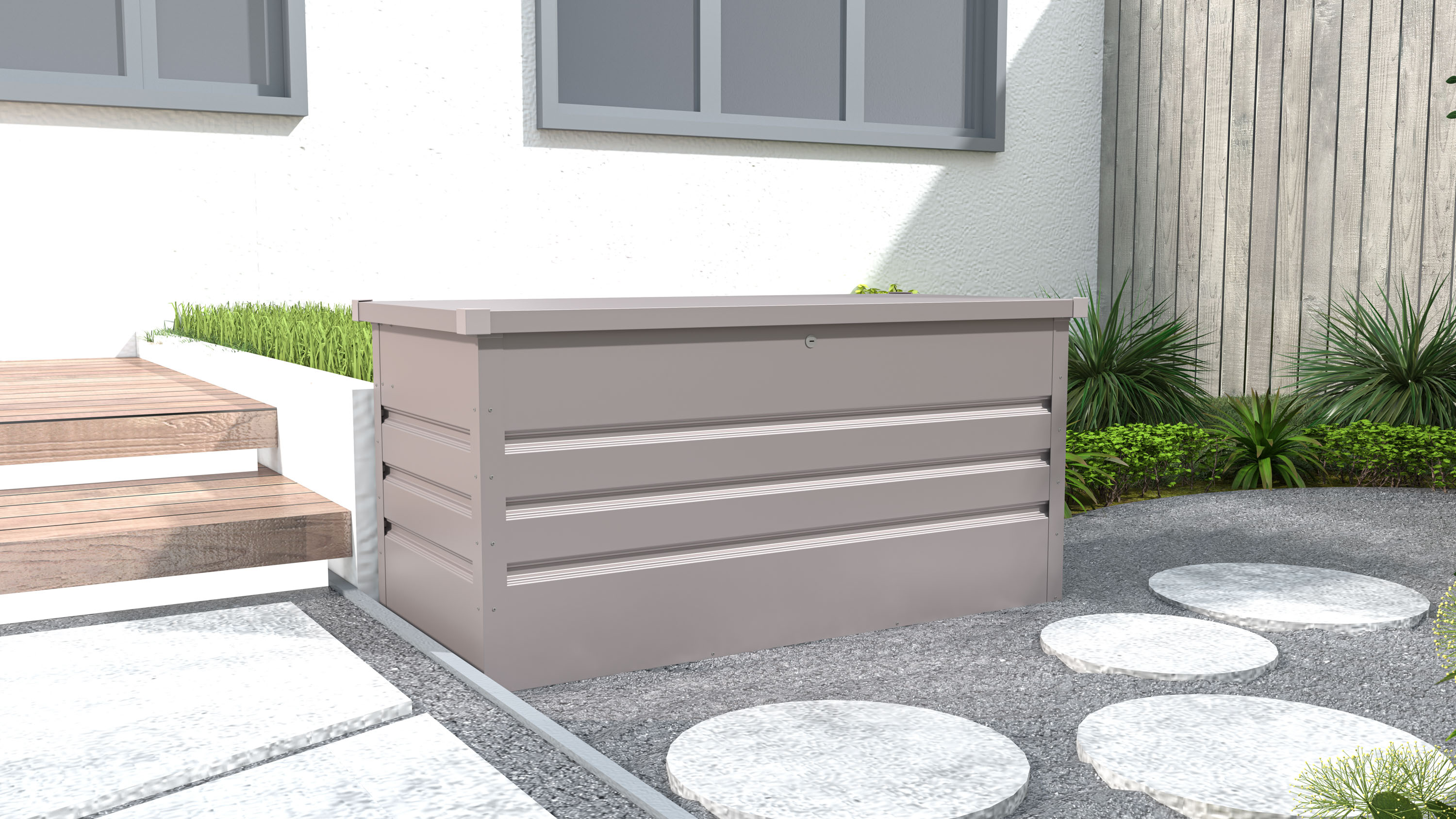 Aby byl zahradní box co nejodolnější a nejbezpečnější, použili jsme k jeho výrobě ocel, chráněnou žárovým pozinkováním. Exteriérový úložný box G21 Denver je tak robustní a přitom bezúdržbový.