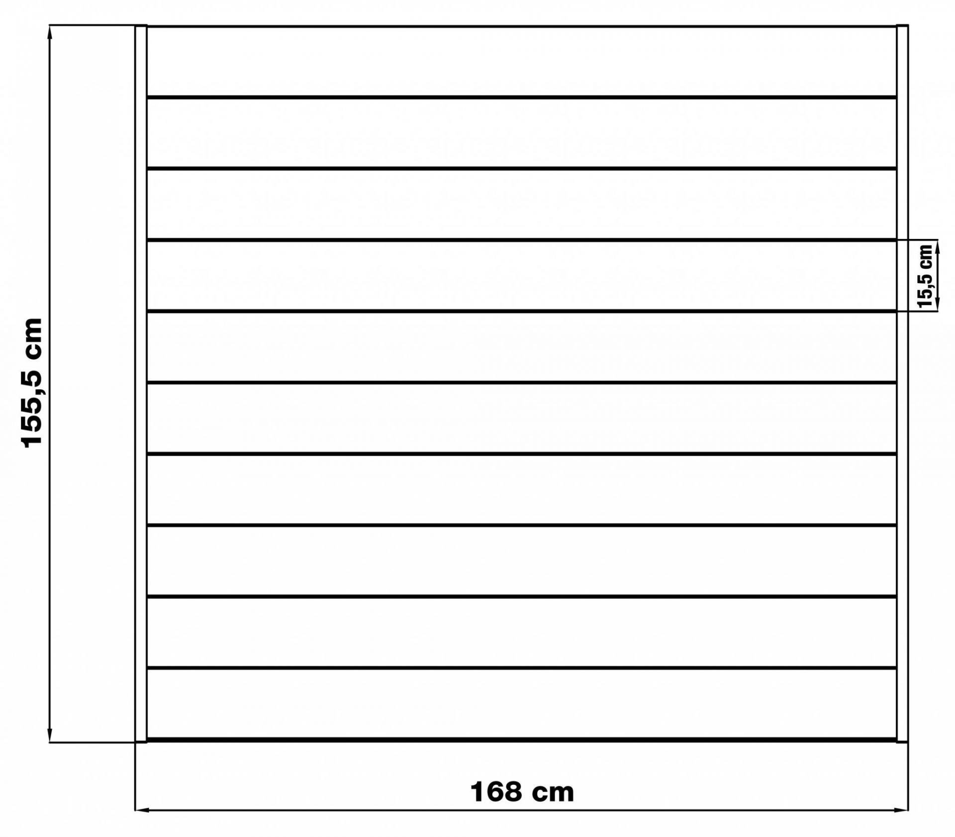 Plotové pole o šířce 168 cm je vysoké 158 cm, materiál hliník s ochranným protikorozním práškovým nástřikem. Rozestupy mezi lamelami pro zvýšenou odolnost proti větru, možnost přizpůsobení šířky na míru.