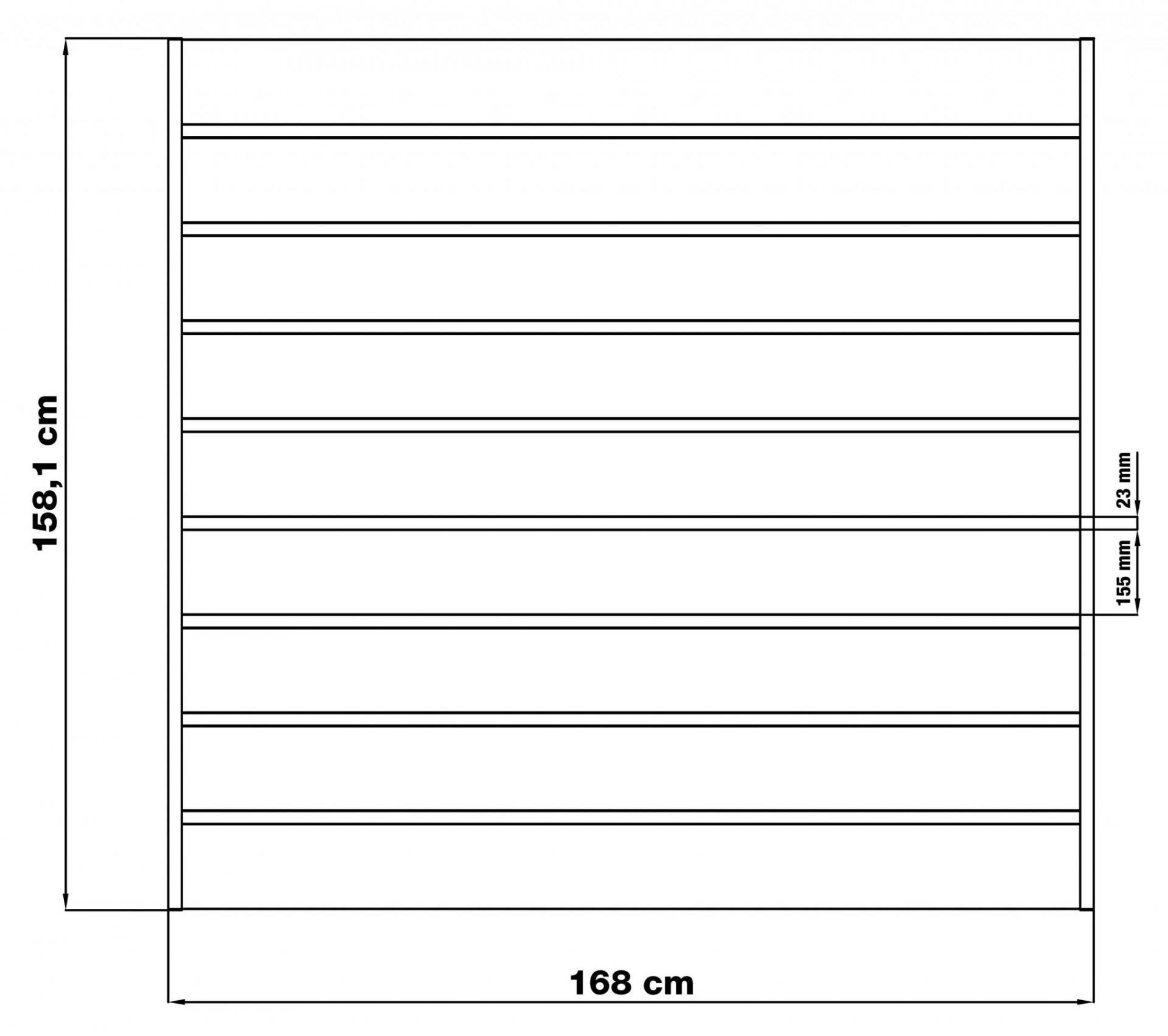 Plotové pole o šířce 168 cm je vysoké 156 cm, materiál hliník s ochranným protikorozním práškovým nástřikem. Čistý atraktivní design, bezúdržbovost, možnost přizpůsobení šířky na míru.