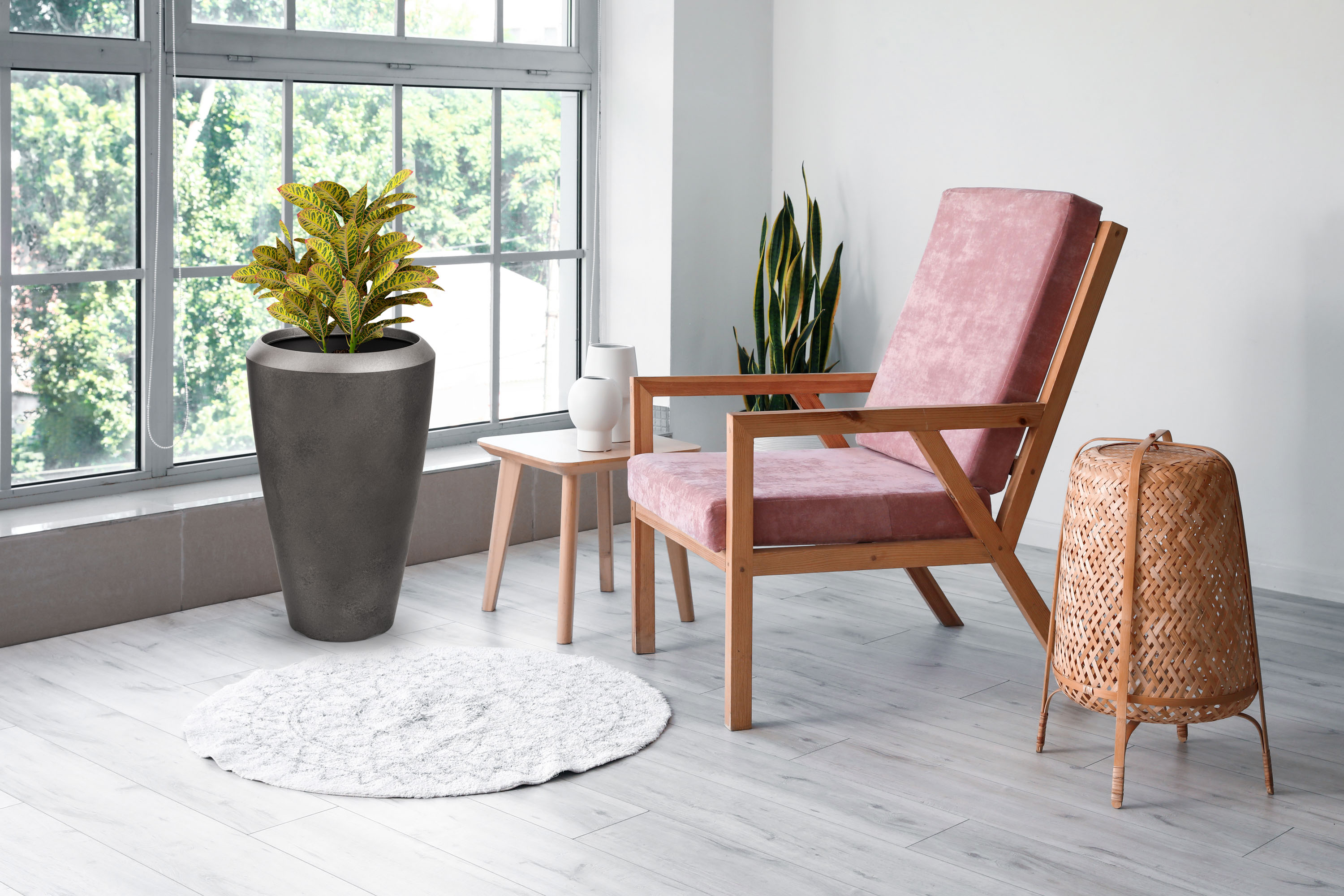 Květináč je vyrobený z kvalitního 0,6 cm silného plastového materiálu s UV filtrem, který vás nelimituje ani co se týče umístění, ani užívání. Květináč je lehký a zároveň výjimečně odolný vůči povětrnostním vlivům. Nemusíte uklízet květiny pod střechu při každé letní spršce ani při silném větru. Naopak vám letní déšť pomůže s údržbou. Květináč můžete na zahradě nechat i v zimě – je odolný vůči mrazu až do -35 °C. Stěny květináče stačí při znečištění opláchnout vodou a je zase jako nový.