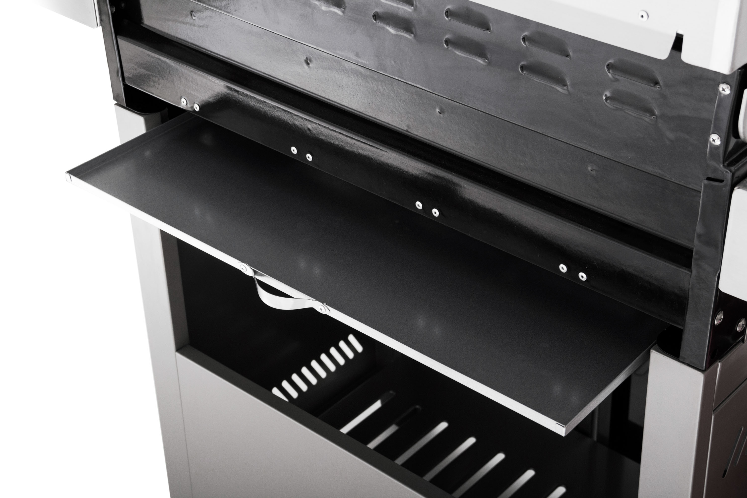 Už hotové grilované speciality můžete v teplém stavu udržovat i na nerezovém ohřívacím stojanu, kterým jsme gril také vybavili.