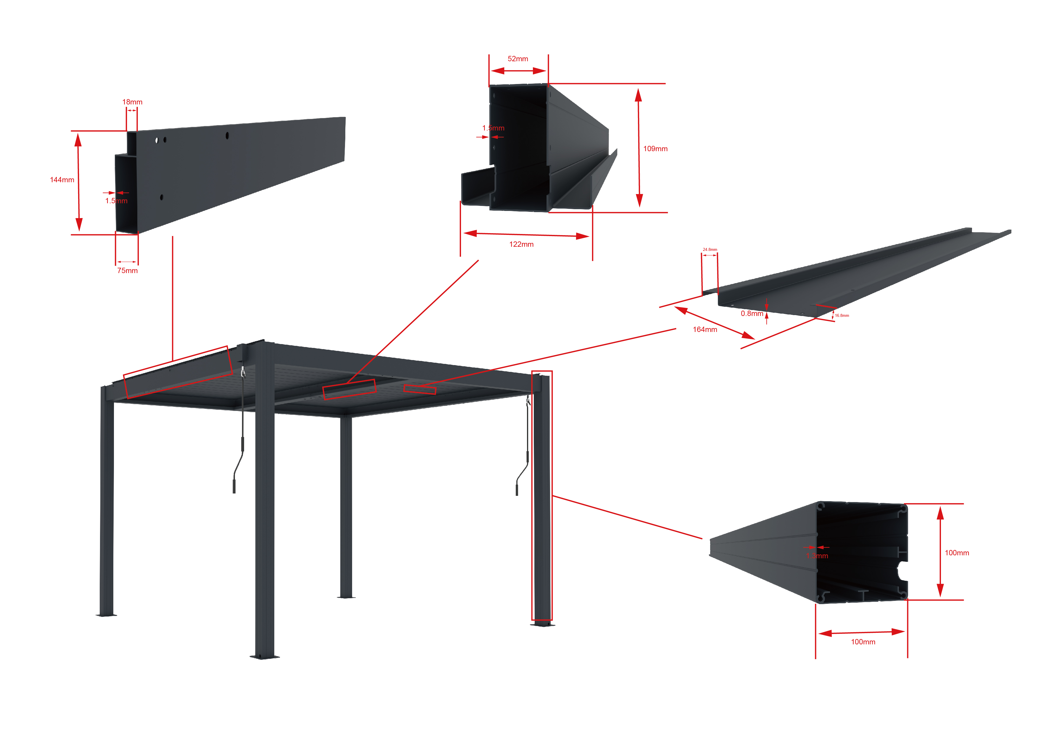 Boční stěna z pozinkovaných lamel pro větší soukromí i ochranu před větrem, deštěm či sluncem. Stabilní konstrukce z kvalitního hliníku, snadná instalace.