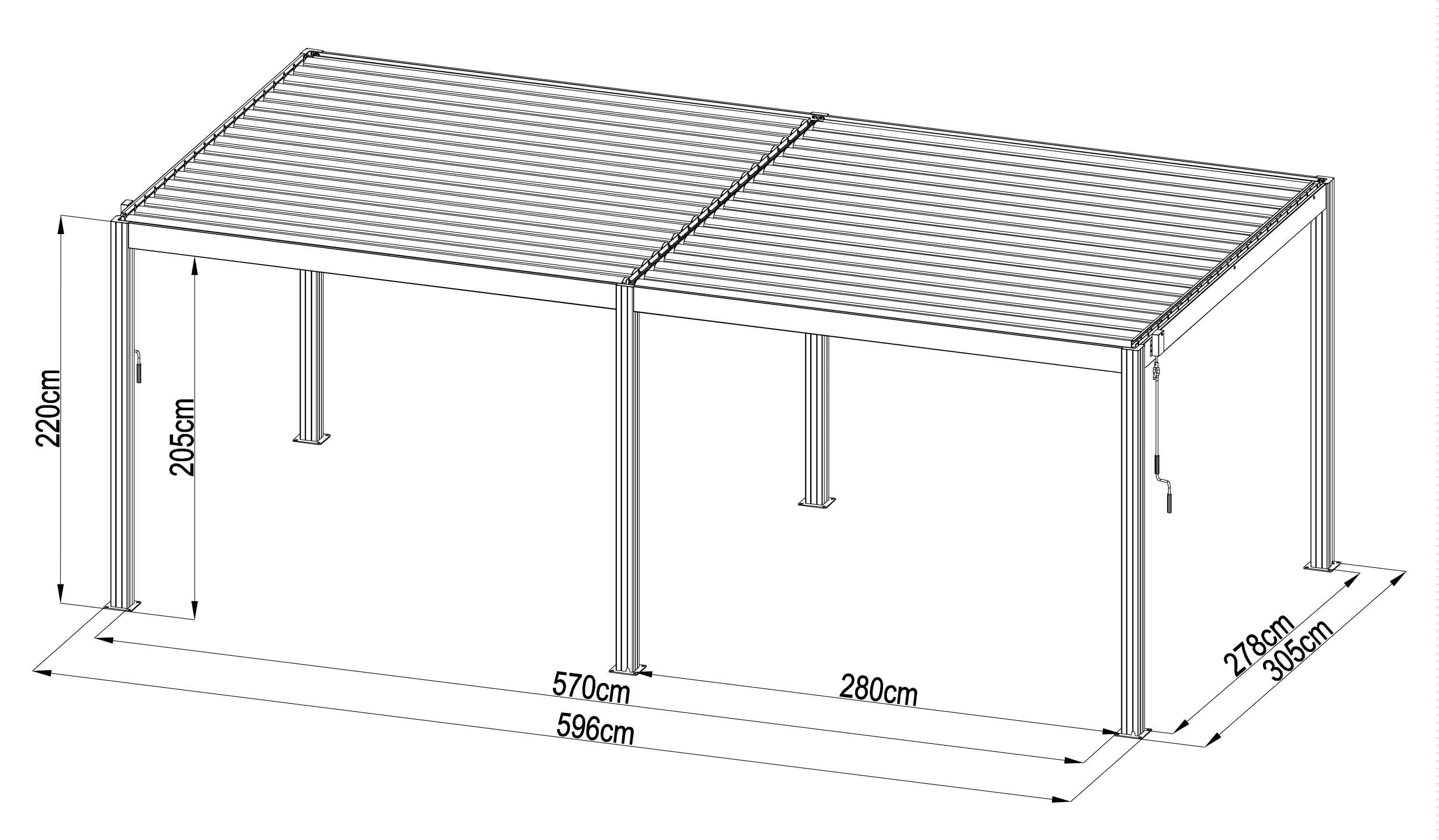 Manuálně nastavitelné lamely vám umožňují rychle reagovat na aktuální počasí. Otevřením zajistíte příjemné proudění vzduchu a světla, zavřením naopak spolehlivou ochranu před sněhem a deštěm. Díky možnosti nastavení lamel v rozsahu až 110° si nastavíte sklon tak, jak potřebujete vzhledem k poloze slunce na obloze. Pergola tak vytváří ideální prostor pro relaxaci i posezení s rodinou a přáteli, ať je venku jakékoliv počasí.
