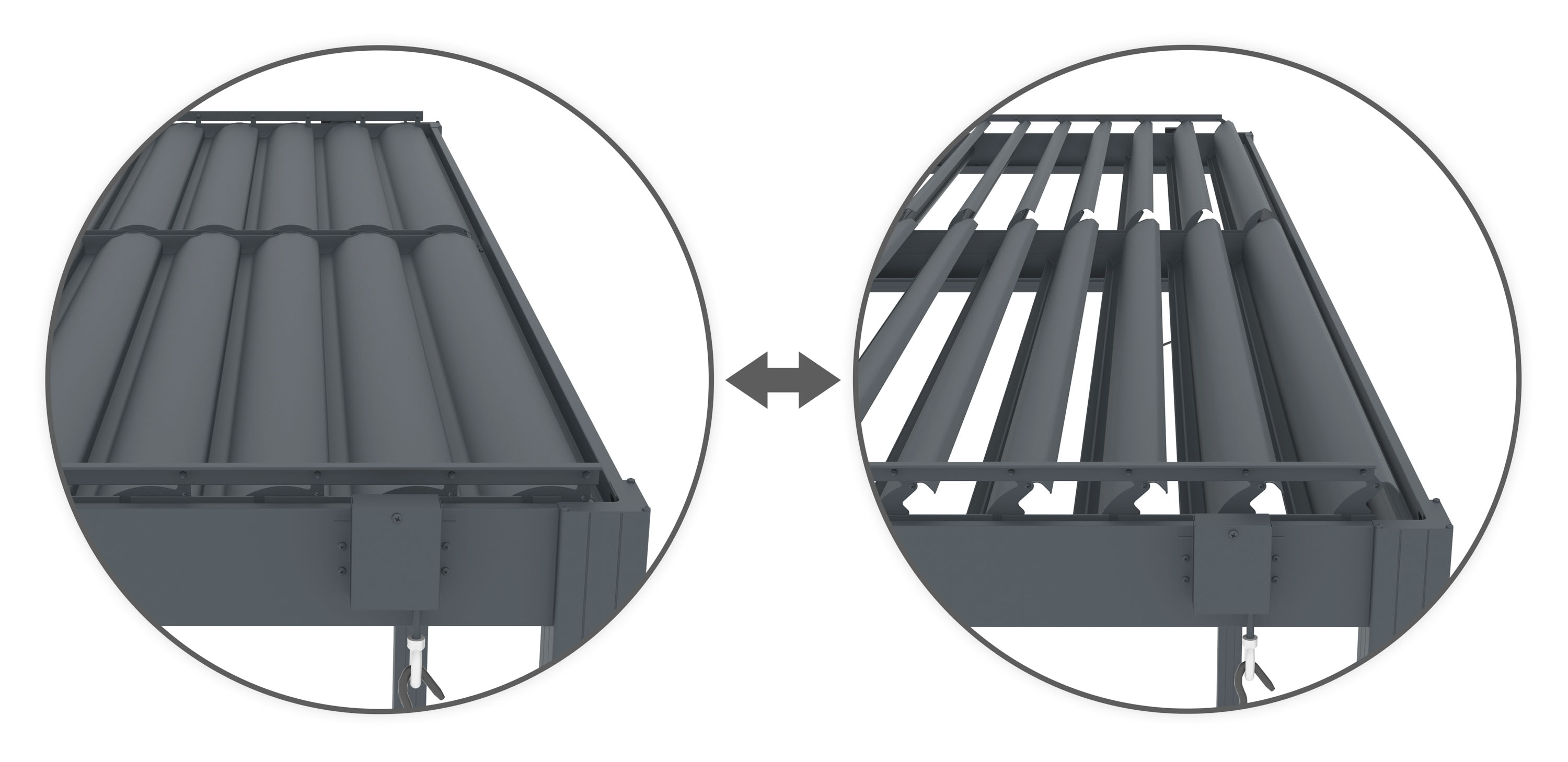 Manuálně nastavitelné lamely vám umožňují rychle reagovat na aktuální počasí. Otevřením zajistíte příjemné proudění vzduchu a světla, zavřením naopak spolehlivou ochranu před sněhem a deštěm. Díky možnosti nastavení lamel v rozsahu až 110° si nastavíte sklon tak, jak potřebujete vzhledem k poloze slunce na obloze. Pergola tak vytváří ideální prostor pro relaxaci i posezení s rodinou a přáteli, ať je venku jakékoliv počasí.