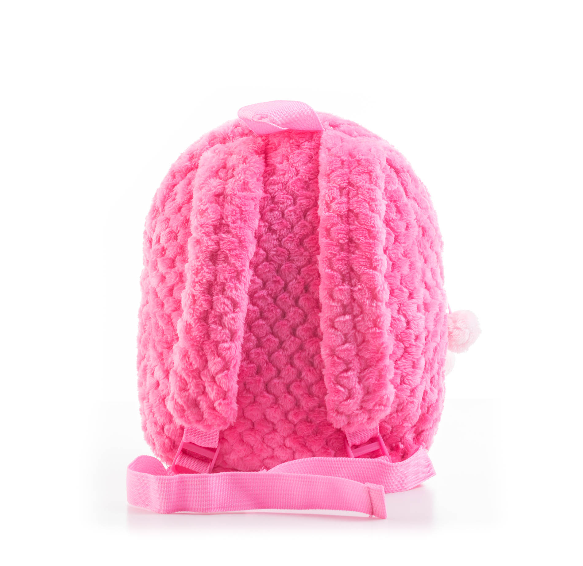 Batůžek má kromě hlavní velké kapsy také malou přední kapsičku, do které si mohou děti uložit všechny své malé poklady. Na zipech obou kapes jsou zavěšeny roztomilé chlupaté bambulky ve světle růžové barvě.