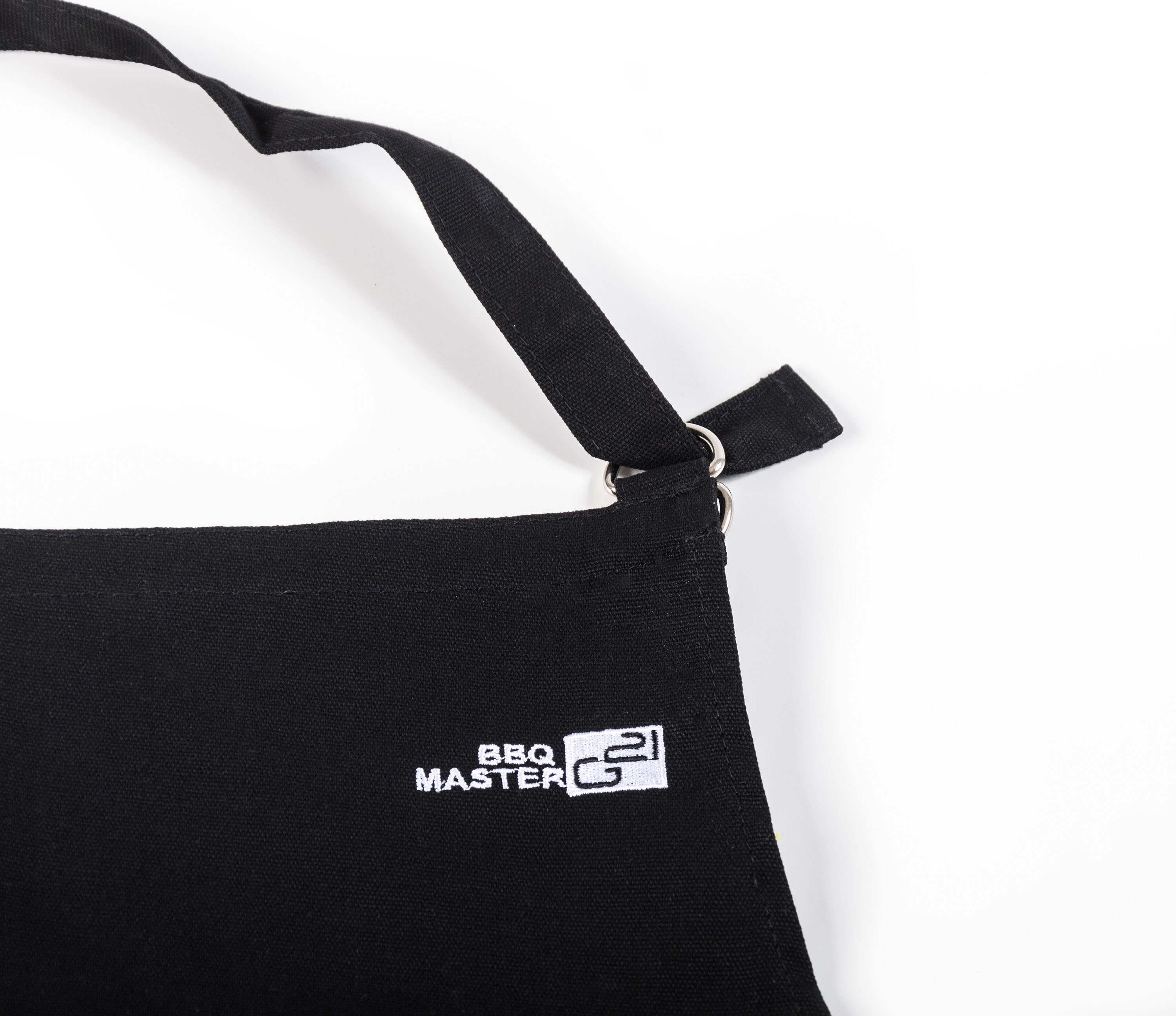 Bavlněná grilovací zástěra se zavazováním za krkem a v pase, takže ji může použít kdokoliv, drobná žena i velký šéf grilu. Do dvou velkých kapes na přední straně zástěry uložíte vše, co nechcete nikam odkládat, ale co zároveň potřebujete mít při ruce.