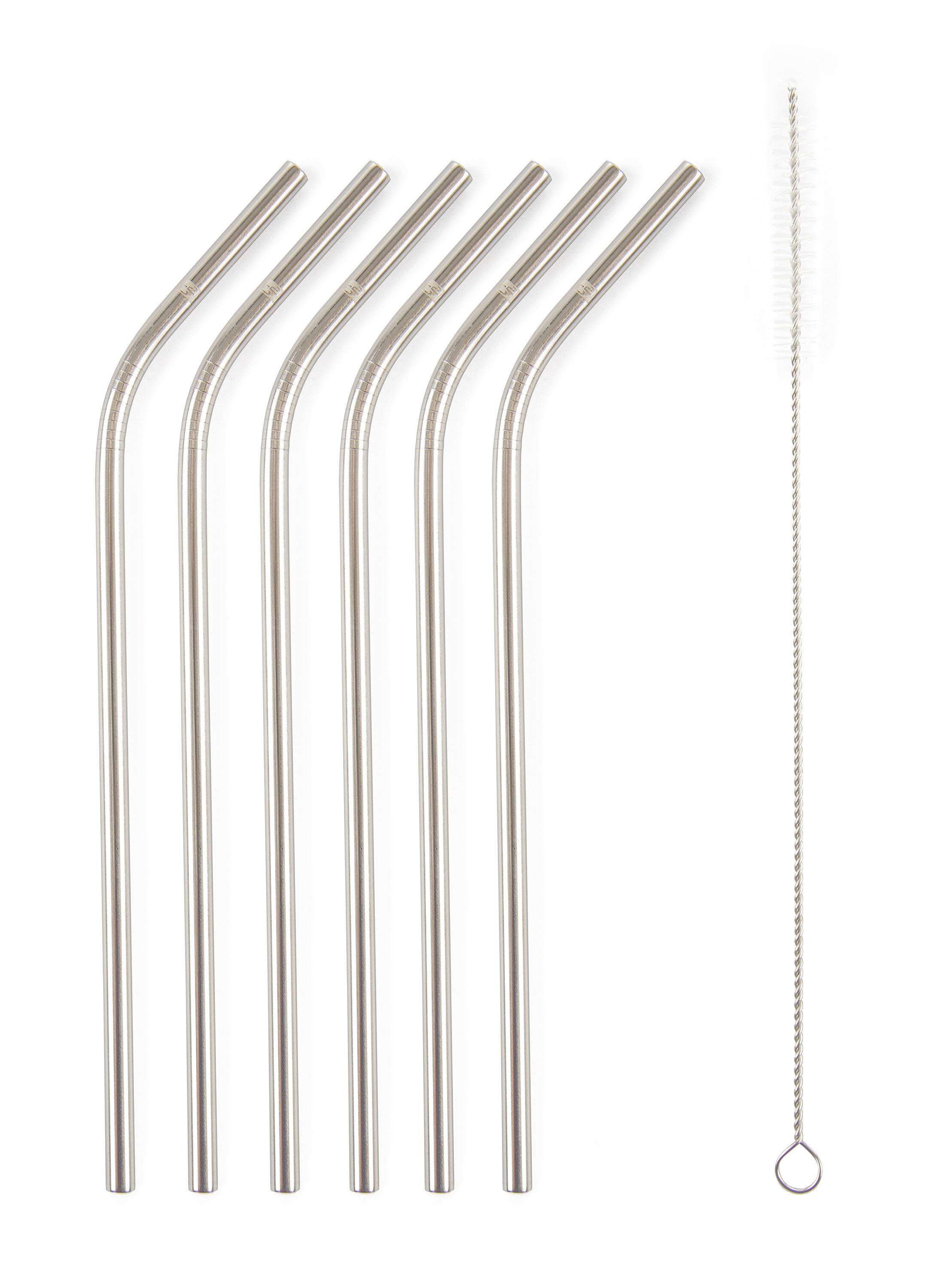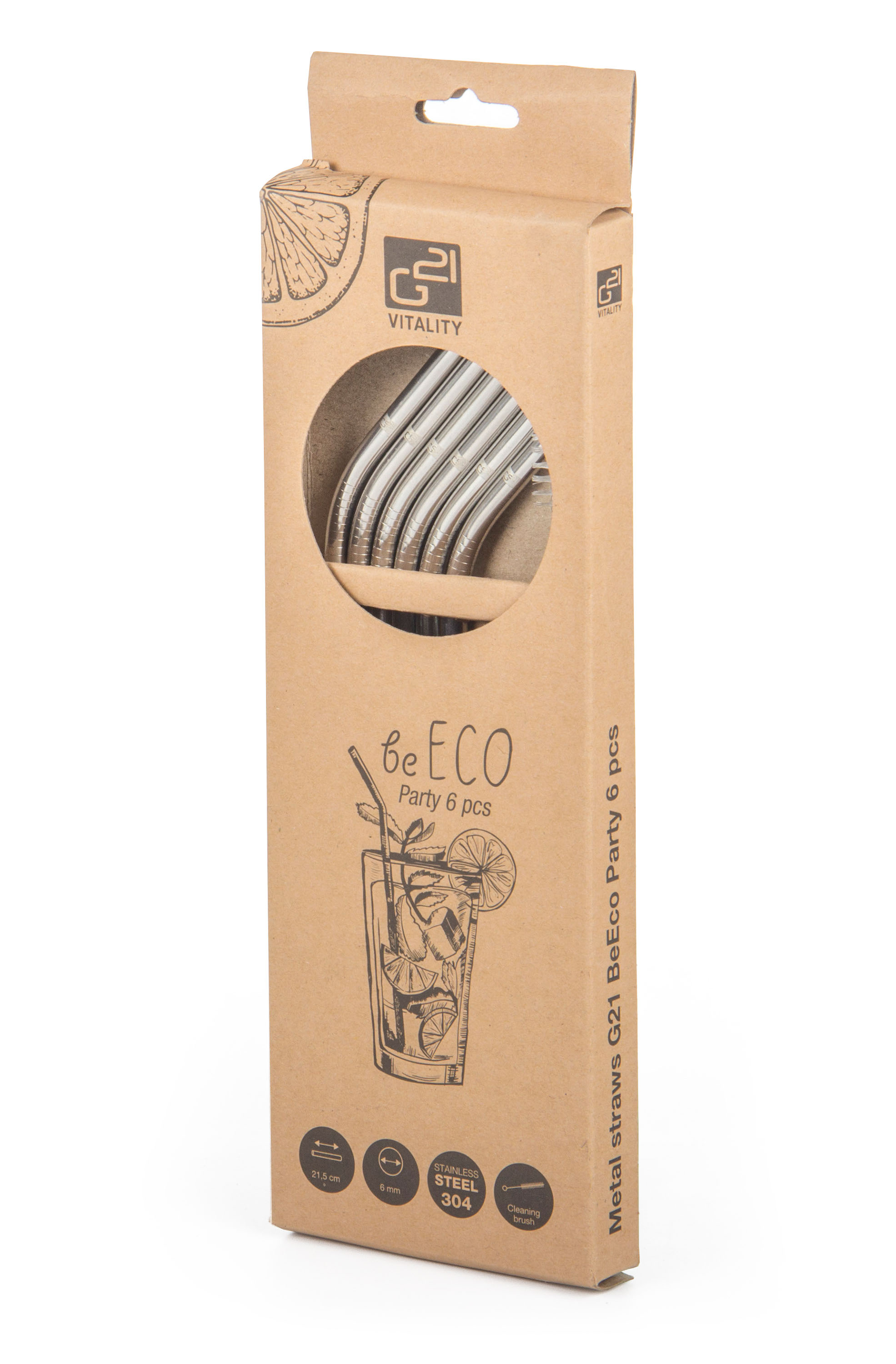 Zahnutá nerezová brčka G21 na pití s průměrem 6 mm, délkou 21,5 cm a zakulacenými hranami jsou ekologická, přenositelná, elegantní a opakovaně použitelná. Sada 6 ks + kartáček na čištění, stylové balení.