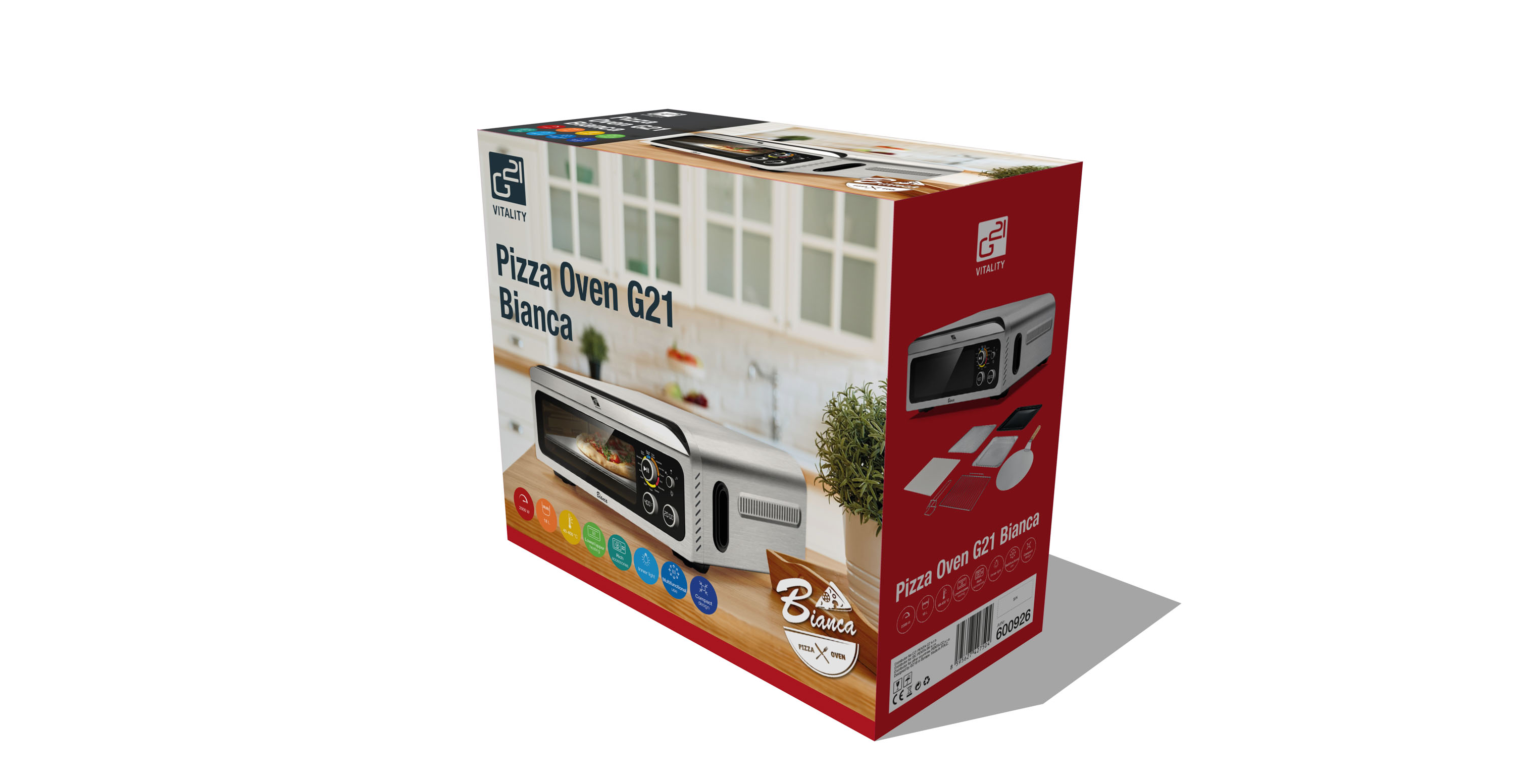 Připravujte nejen lahodnou pizzu o průměru až 28 cm, ale i širokou škálu dalších pokrmů s pomocí multifunkční pece na pizzu G21 Bianca z kvalitní nerezové oceli, která jí dodává odolnost a dlouhou životnost, a zároveň přináší moderní a stylový design, který se hodí do každé kuchyně.