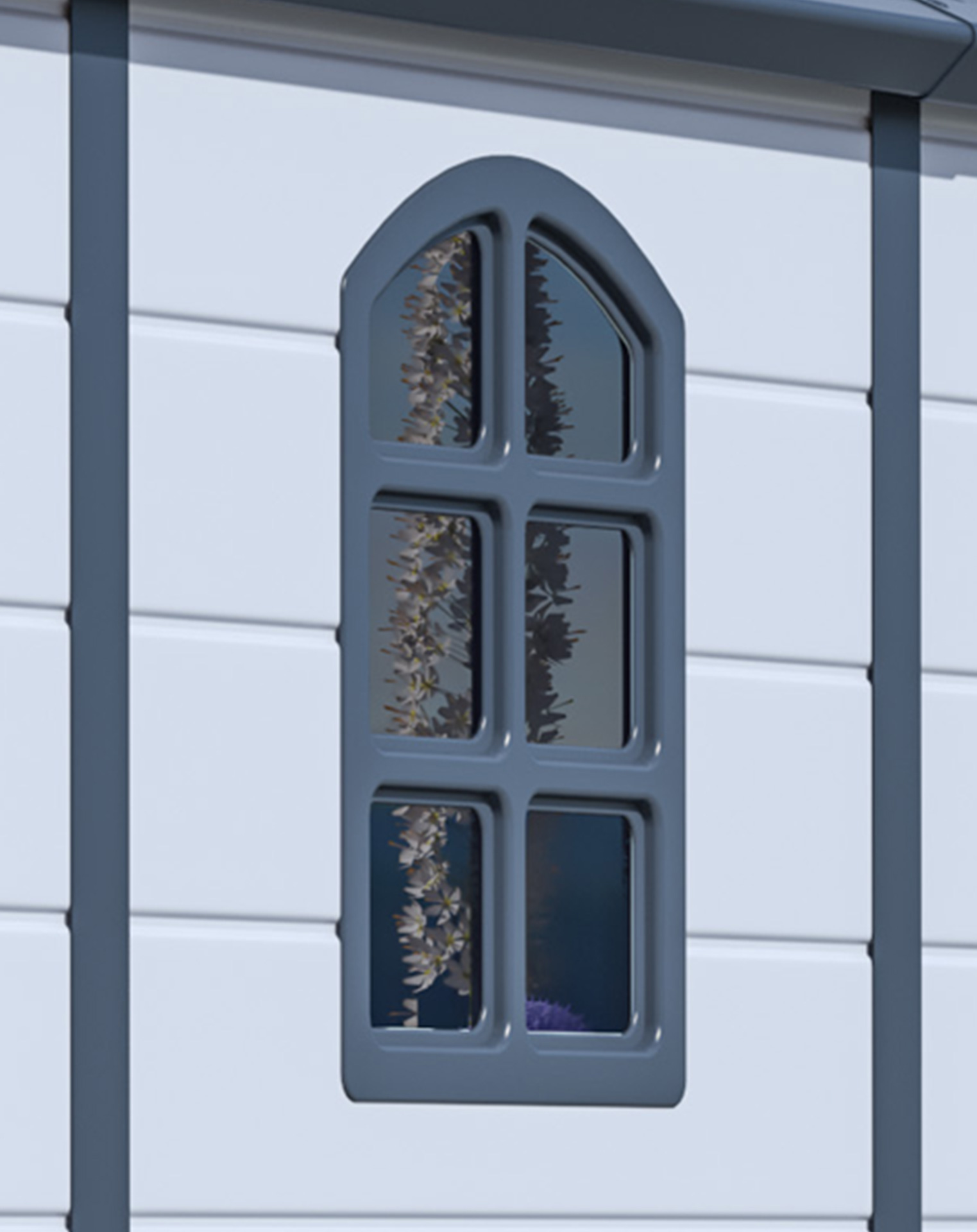 V žádném pořádném zahradním domku nesmí chybět okénko. Ani u toho našeho nechybí, navíc si je můžete umístit kam chcete. Neomezujte se kvůli dostatku světla a nerozmýšlejte se, zda domek postavit ke zdi domu, nebo do volného prostoru. Dostatečné množství světla vás nebude limitovat. Okno si jednoduše umístěte na pravou nebo levou stranu domku, podle aktuální potřeby.
