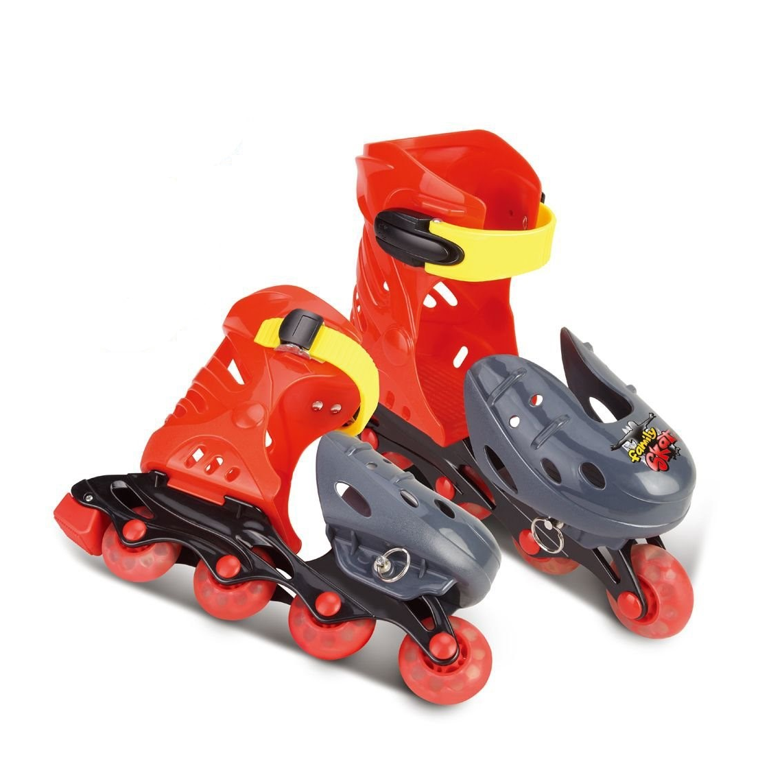 Brusle jsou vyrobené z odolného plastu a jsou určené k navlečení přes běžnou obuv. Tak nemusíte při bruslení dítěti nést botičky v ruce. Kolečka jsou potažena gumou, která při bruslení tlumí nárazy a jízda je díky ní plynulá. Rychlozapínací přezka umožňuje upevnění bruslí na nohy za pouhý okamžik.