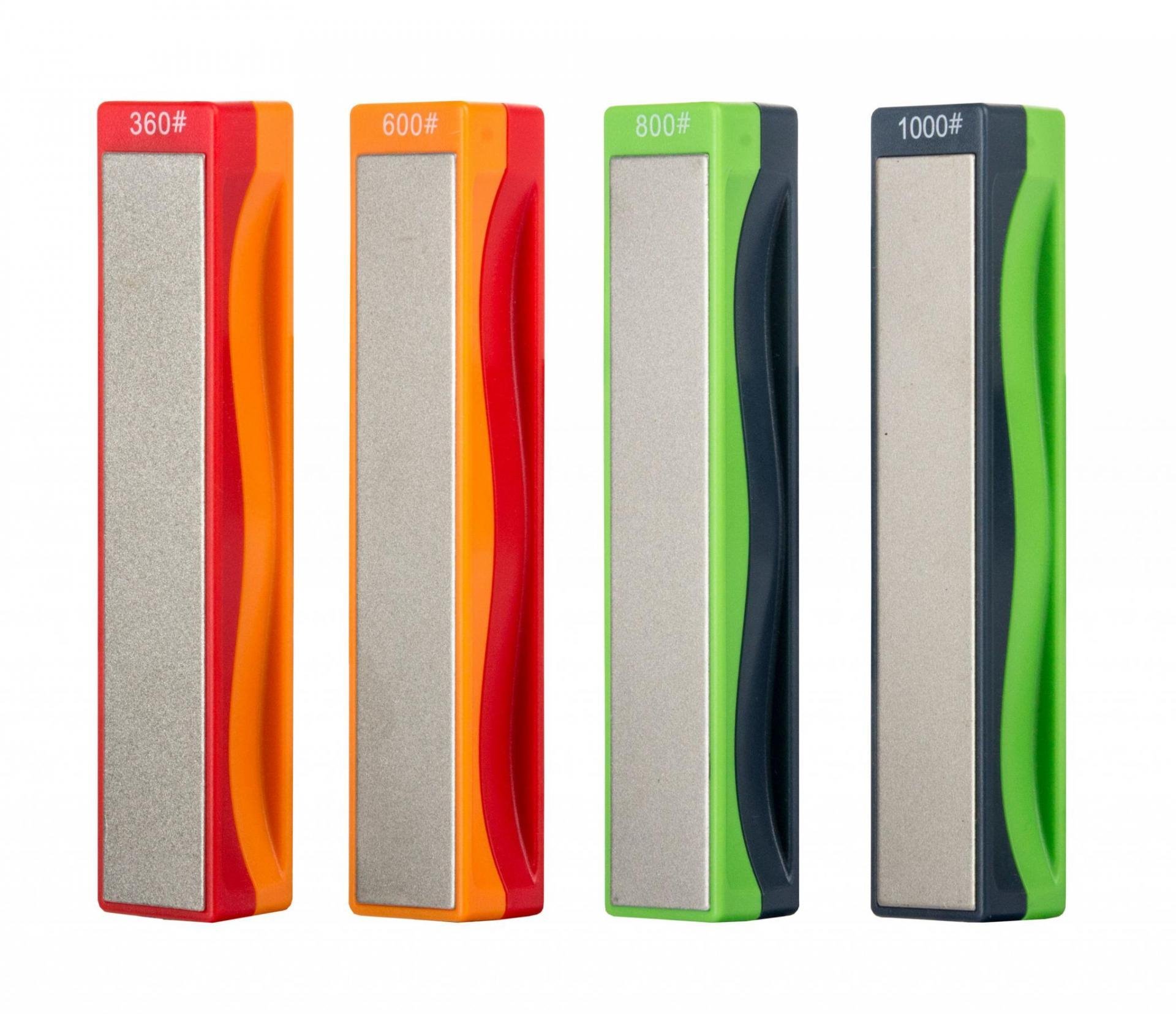 Náhradní díl ke speciální sadě G21 Profi, pro přesné a dokonalé ostření, 4 zrnitosti brusného bloku, v balení 4 ks brusných bloků o různé zrnitosti #360, #600, #800 a #1000.