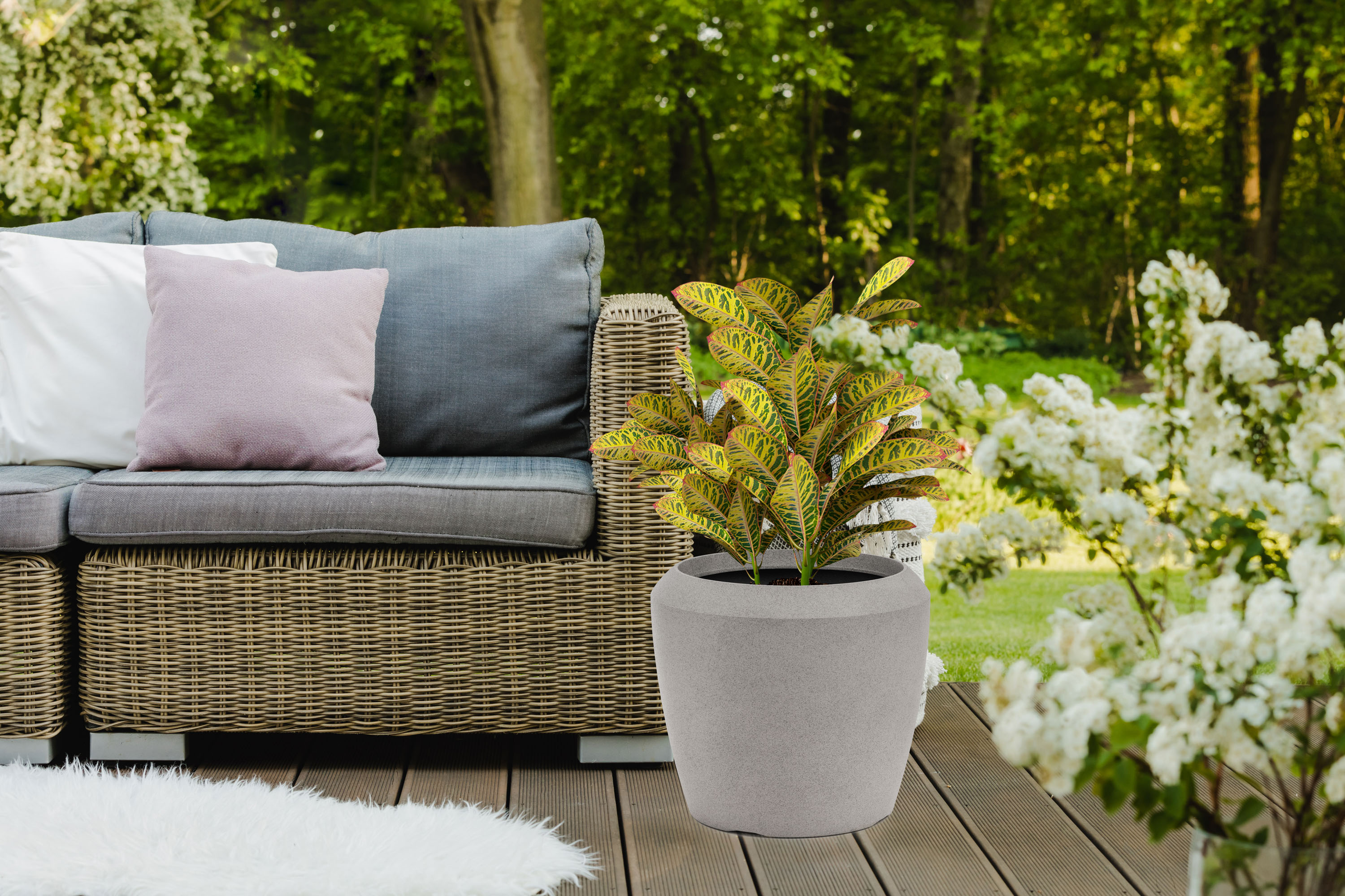 Květináč je vyrobený z kvalitního 0,6 cm silného plastového materiálu s UV filtrem, který vás nelimituje ani co se týče umístění, ani užívání. Květináč je lehký a zároveň výjimečně odolný vůči povětrnostním vlivům. Nemusíte uklízet květiny pod střechu při každé letní spršce ani při silném větru. Naopak vám letní déšť pomůže s údržbou. Květináč můžete na zahradě nechat i v zimě – je odolný vůči mrazu až do -35 °C. Stěny květináče stačí při znečištění opláchnout vodou a je zase jako nový.