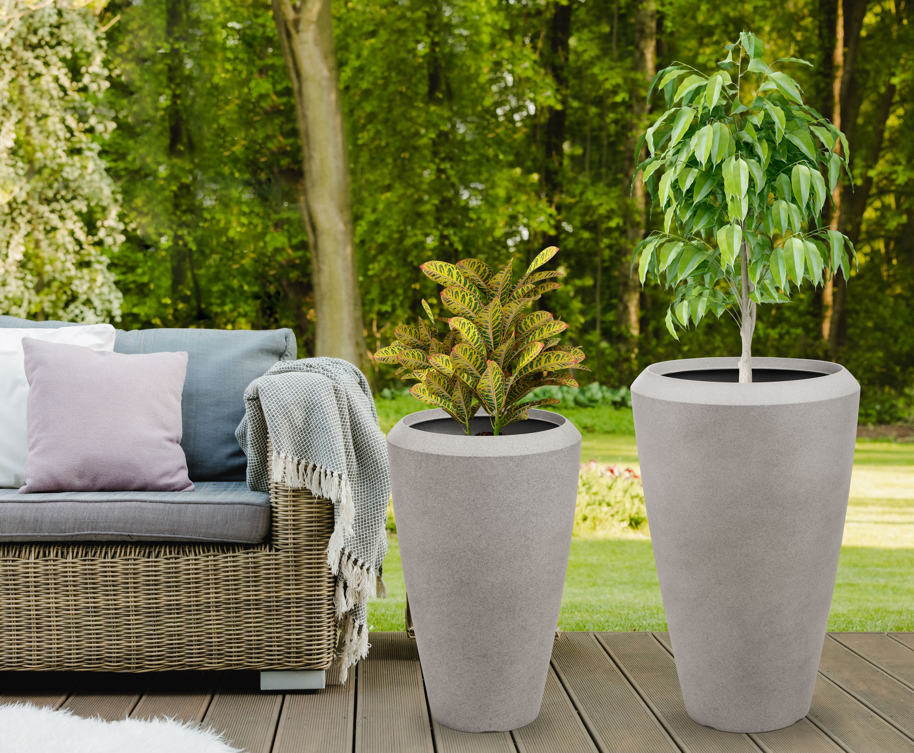 Květináč je vyrobený z kvalitního 0,6 cm silného plastového materiálu s UV filtrem, který vás nelimituje ani co se týče umístění, ani užívání. Květináč je lehký a zároveň výjimečně odolný vůči povětrnostním vlivům. Nemusíte uklízet květiny pod střechu při každé letní spršce ani při silném větru. Naopak vám letní déšť pomůže s údržbou. Květináč můžete na zahradě nechat i v zimě – je odolný vůči mrazu až do -35 °C. Stěny květináče stačí při znečištění opláchnout vodou a je zase jako nový.