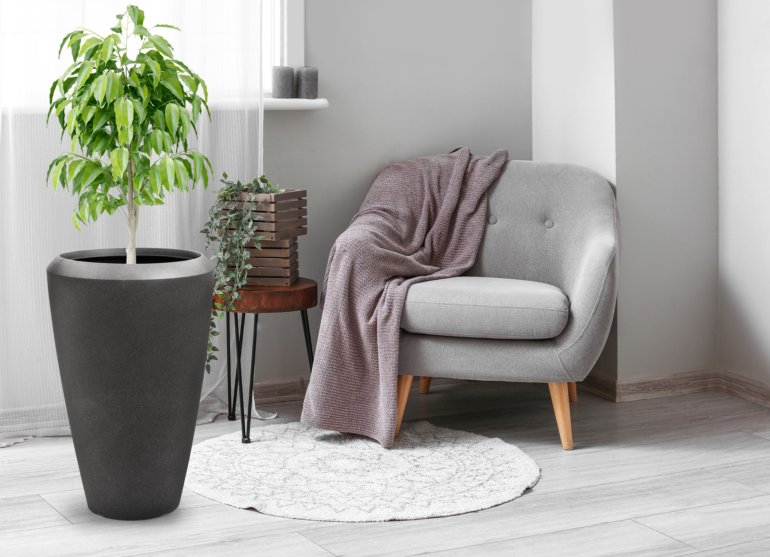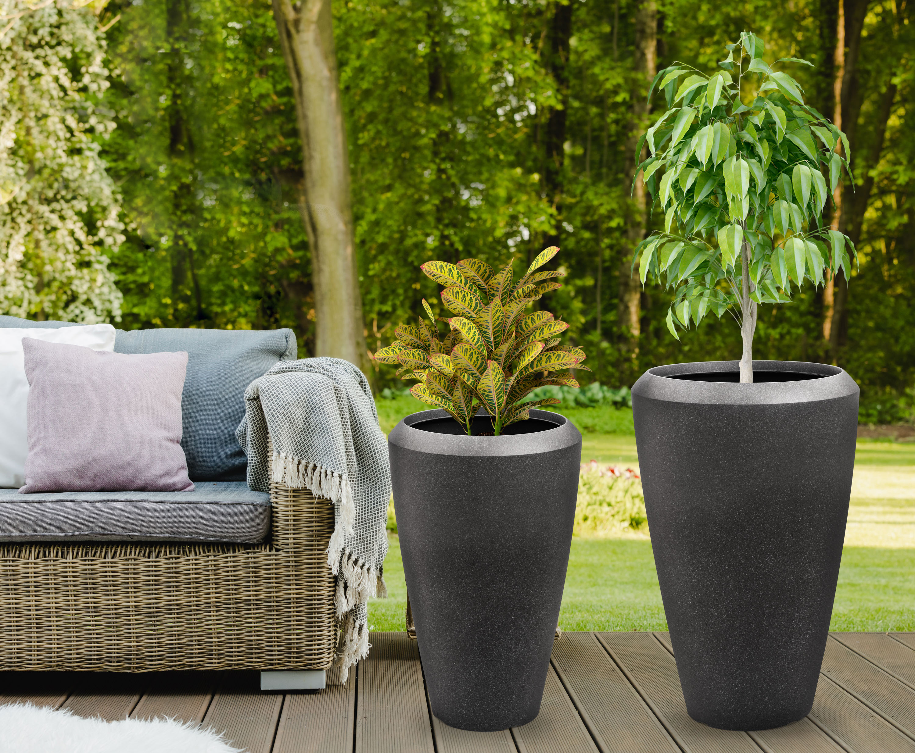 Květináč je vyrobený z kvalitního 0,6 cm silného plastového materiálu s UV filtrem, který vás nelimituje ani co se týče umístění, ani užívání. Květináč je lehký a zároveň výjimečně odolný vůči povětrnostním vlivům. Nemusíte uklízet květiny pod střechu při každé letní spršce ani při silném větru. Naopak vám letní déšť pomůže s údržbou. Květináč můžete na zahradě nechat i v zimě – je odolný vůči mrazu až do -35 °C. Stěny květináče stačí při znečištění opláchnout vodou a je zase jako nový.