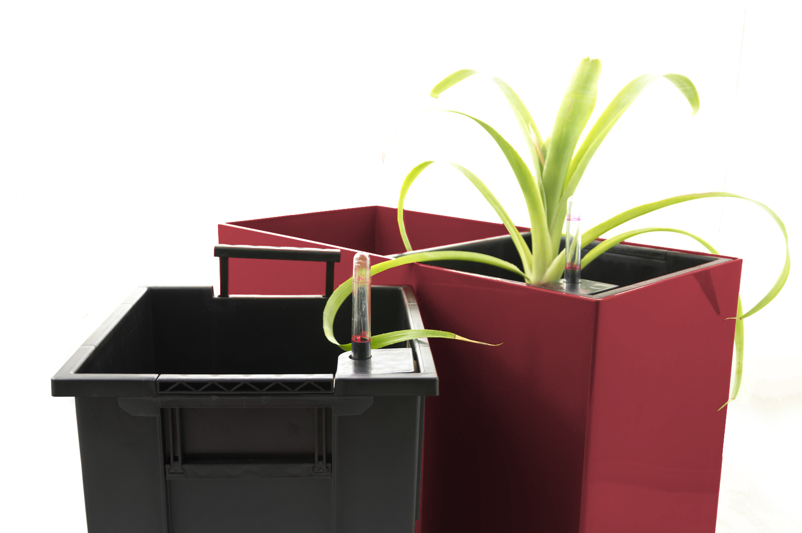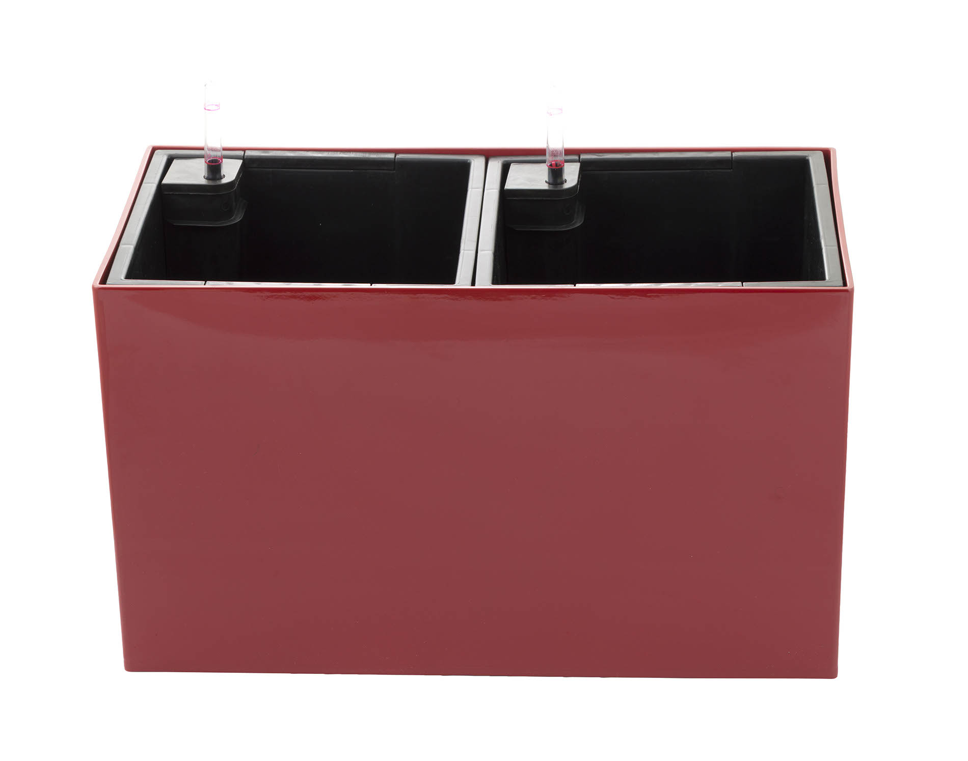 Samozavlažovací květináč G21 z řady Combi obsahuje 2 samozavlažovací nádobky v jednom. Květináč je vysoký 32 cm a každá jeho nádobka je široká 28 cm. Moderní hranatý květináč v červené barvě je praktickým pomocníkem při pěstování rostlin.
