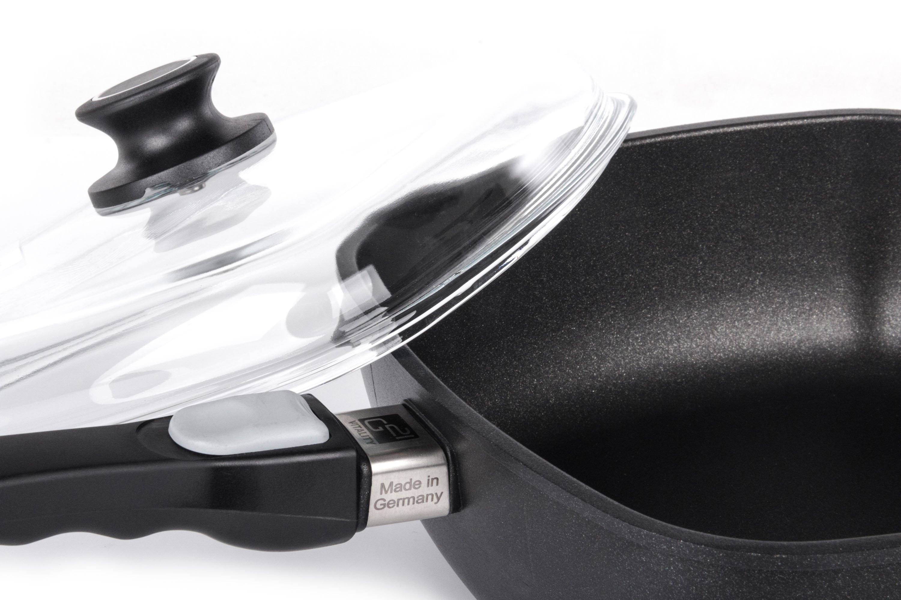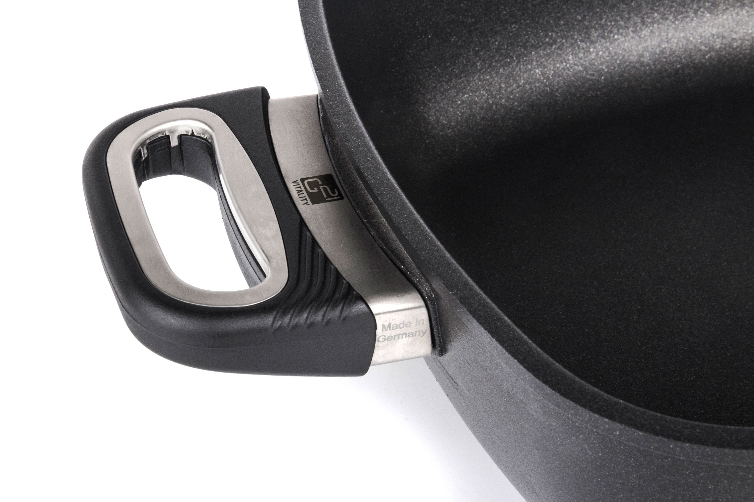 Na kulaté pánvi s pětivrstvým silným dnem a nepřilnavým povrchem LOTAN® můžete smažit, zapékat, restovat i dusit bez použití tuku. Univerzální pro všechny typy ohřevu, záruka 2 + 2 roky, vyrobeno v Německu.