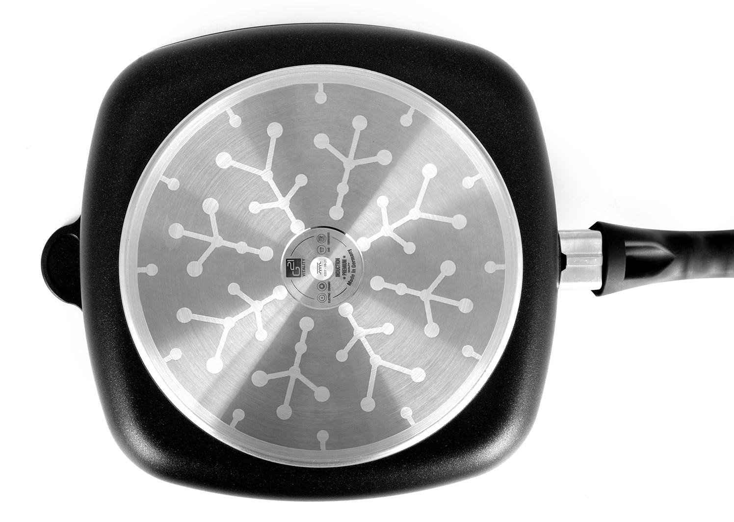 Prohlédněte si čtvercovou, 8 cm vysokou pánev, která splňuje všechny uvedené požadavky na dokonalou pánev. Je univerzální pro všechny typy ohřevů, teplo vede dokonale rovnoměrně, jídlo se na ní díky speciální nepřilnavé vrstvě LOTAN® nepřipaluje a smažit či zapékat můžete bez použití oleje.