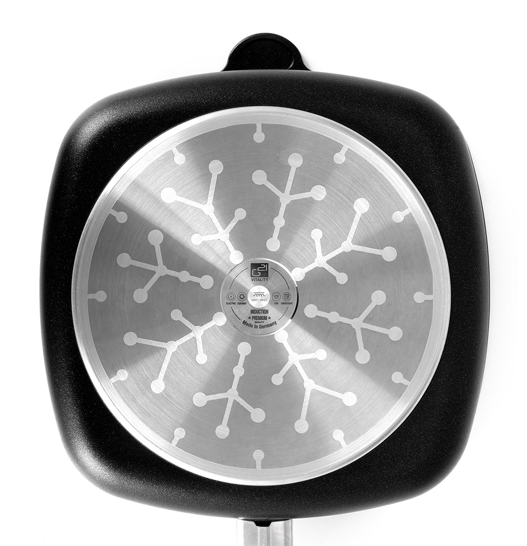 Na čtvercové pánvi s pětivrstvým silným dnem a nepřilnavým povrchem LOTAN® můžete smažit, zapékat, restovat, fritovat i dusit bez použití tuku. Univerzální pro všechny typy ohřevu, záruka 2 + 2 roky, vyrobeno v Německu.