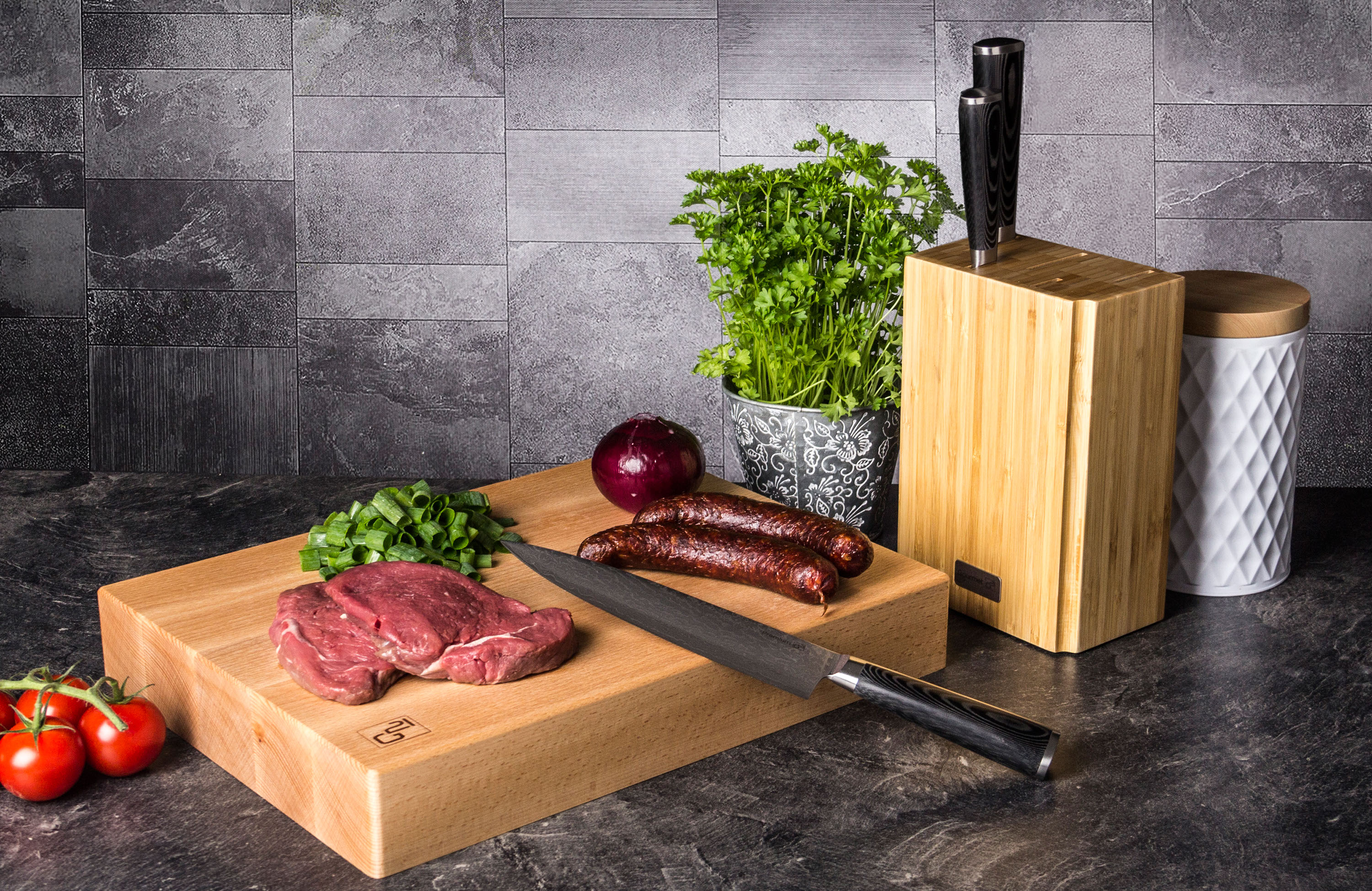 Pokud máte rádi přírodní materiály, pak je přímo pro vás stvořen blok na nože G21 Gourmet Damascus. Blok je vyroben z bambusového dřeva. 5 otvorů pro nože různých velikostí.