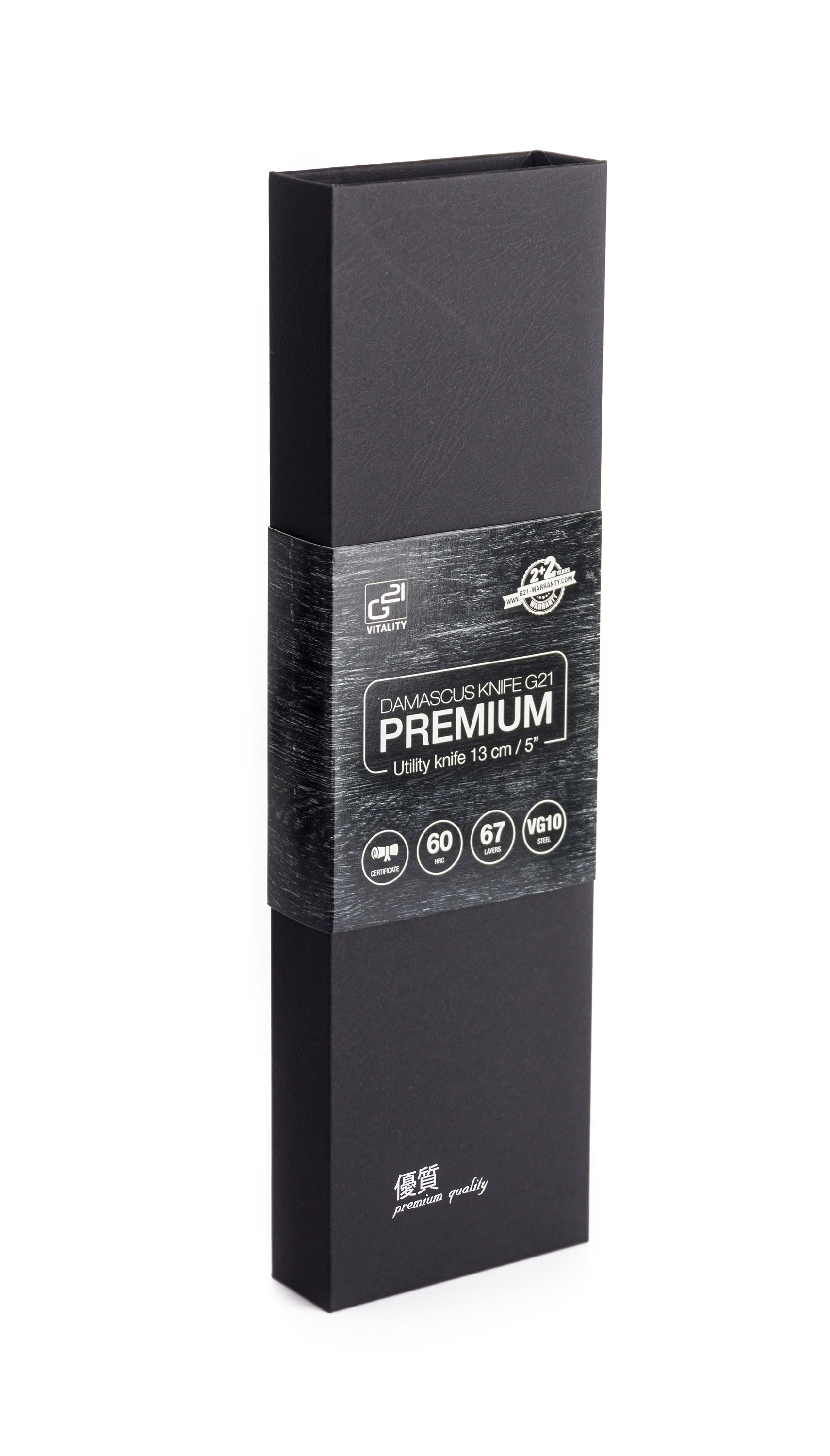Kuchyňské nože G21 s čepelí z damaškové oceli jsou vyráběny technologií práškové metalurgie, kdy se na základní kov (v tomto případě ocel VG-10) nanáší vrstvy, které jsou postupně spékány dohromady. Různé složení těchto vrstev způsobuje jejich odlišné zabarvení.