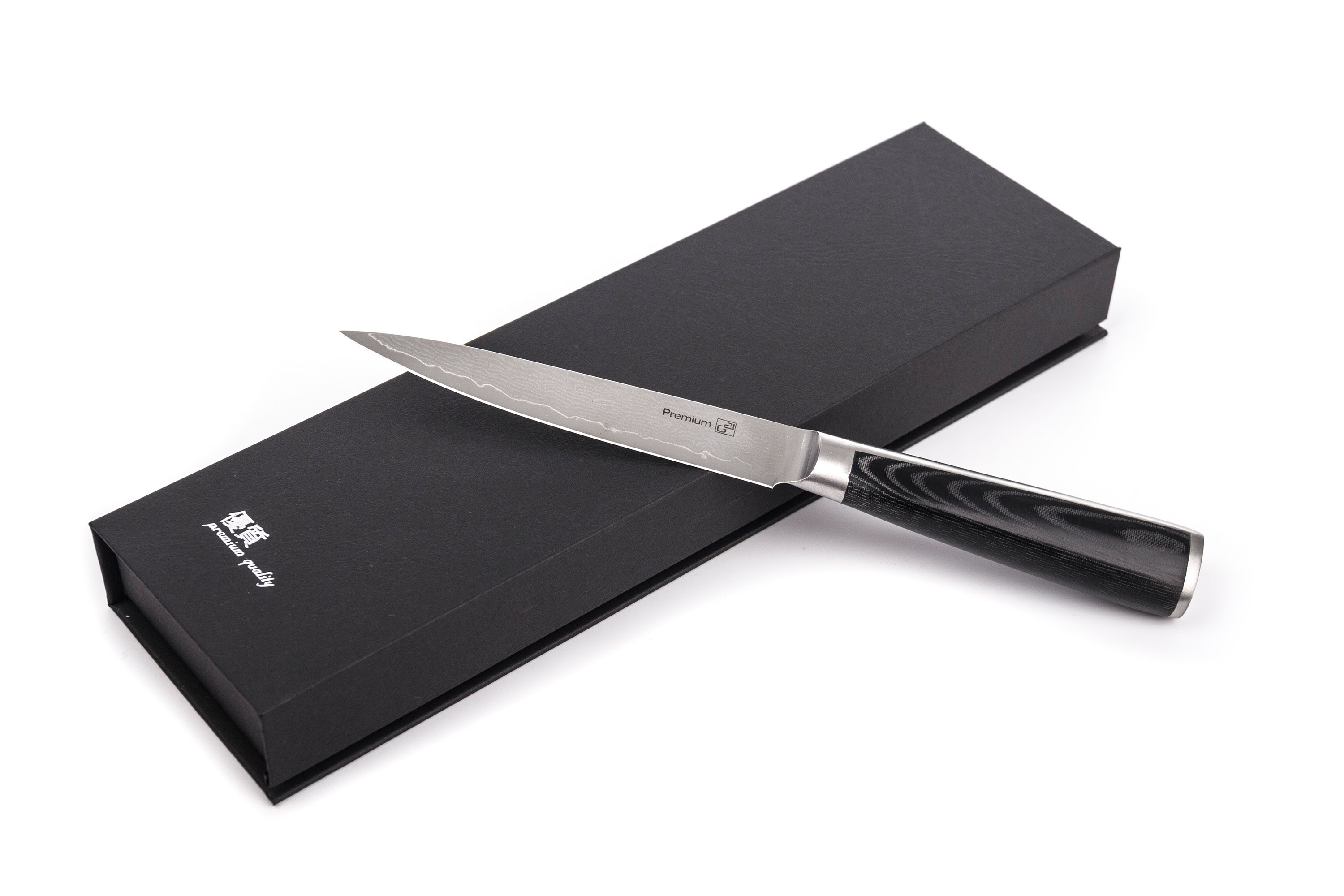 Rukojeť je vyrobena z extra pevného a odolného laminátového materiálu, nazývaného Micarta. Micartu tvoří plátno nebo skelná tkanina s termostatickou pryskyřicí. Výsledkem je pevná, houževnatá rukojeť, která nepodléhá zkáze času. Hladké, rovné, čisté linie tohoto nože se stanou ozdobou každé kuchyně.