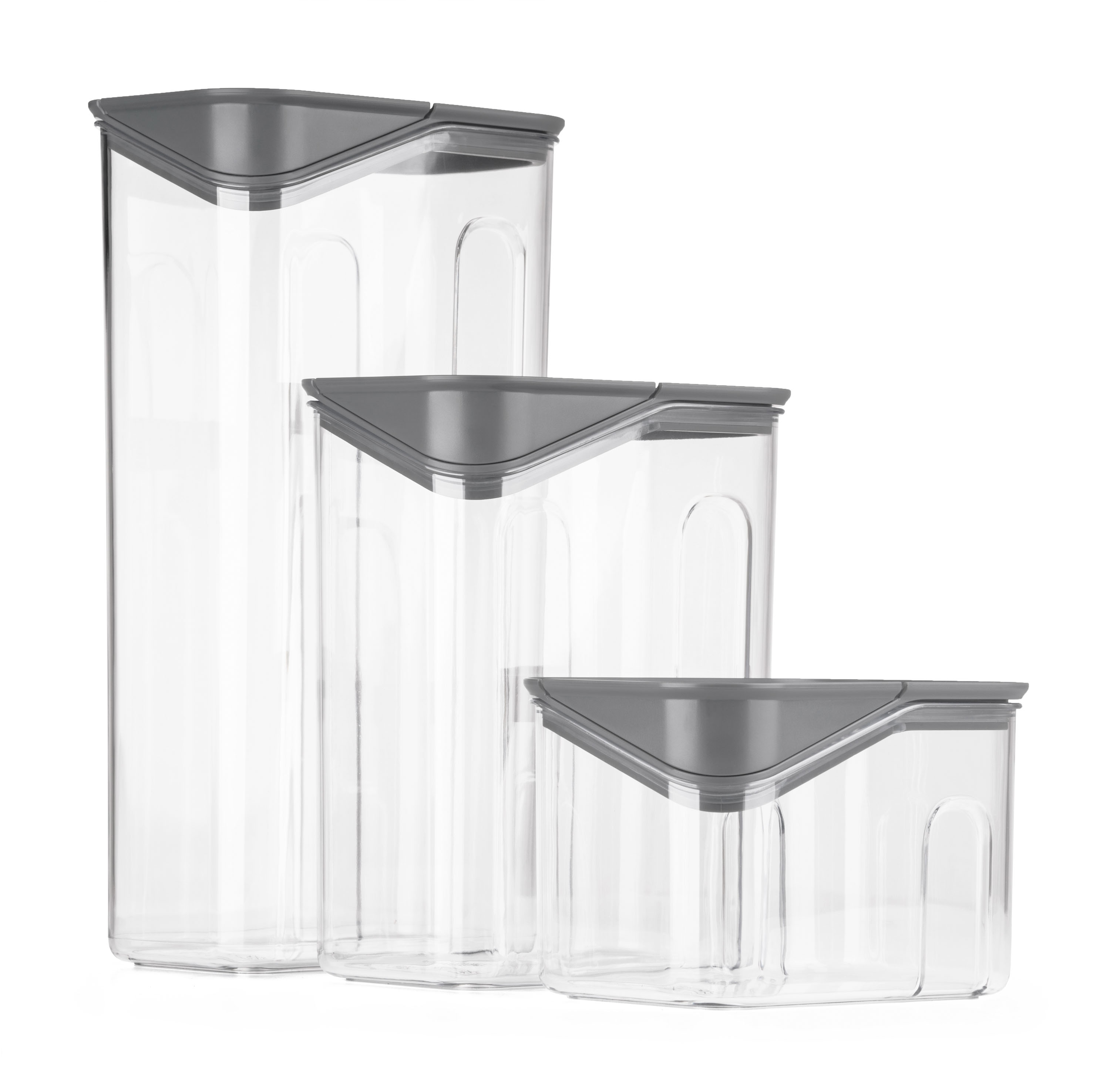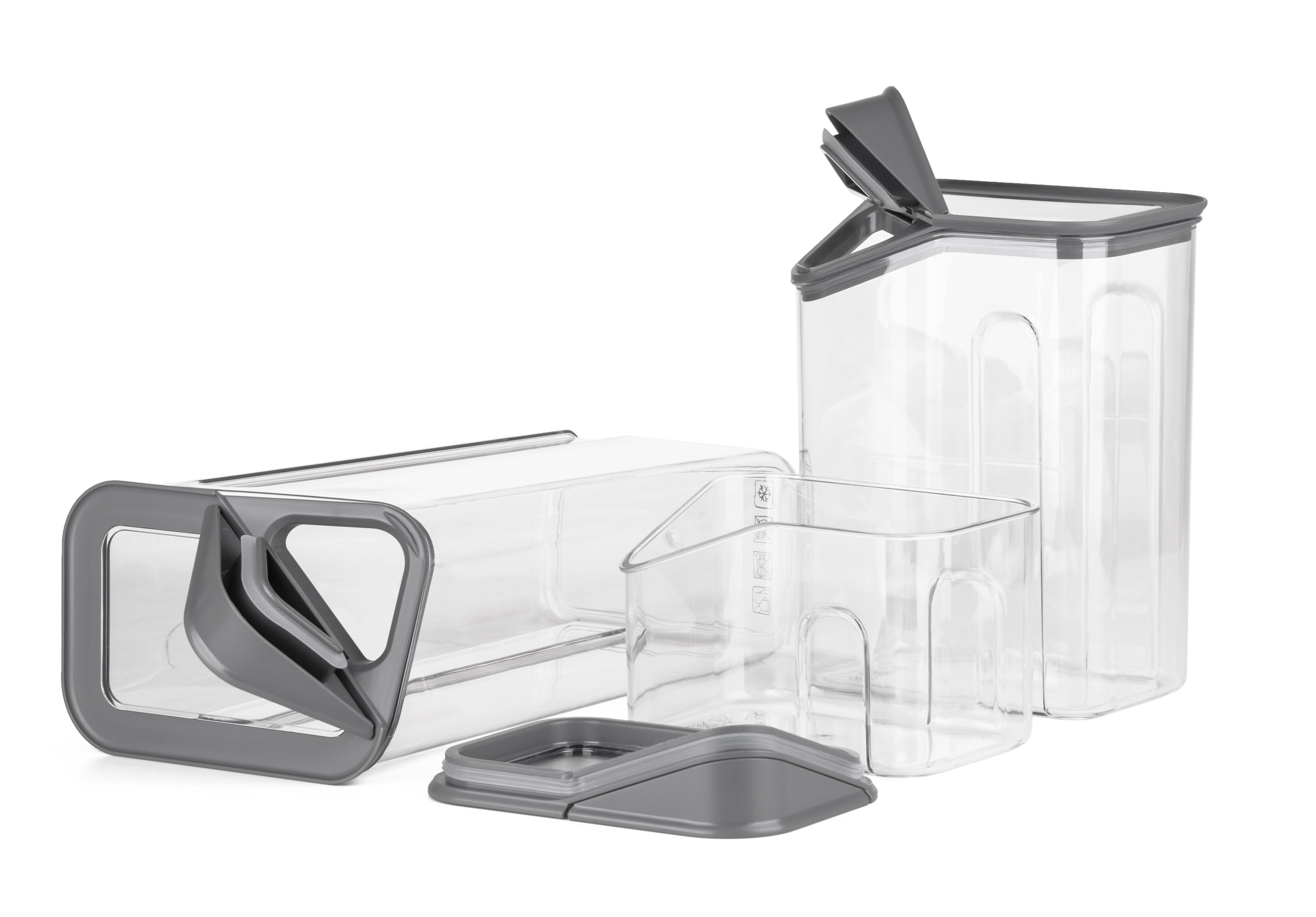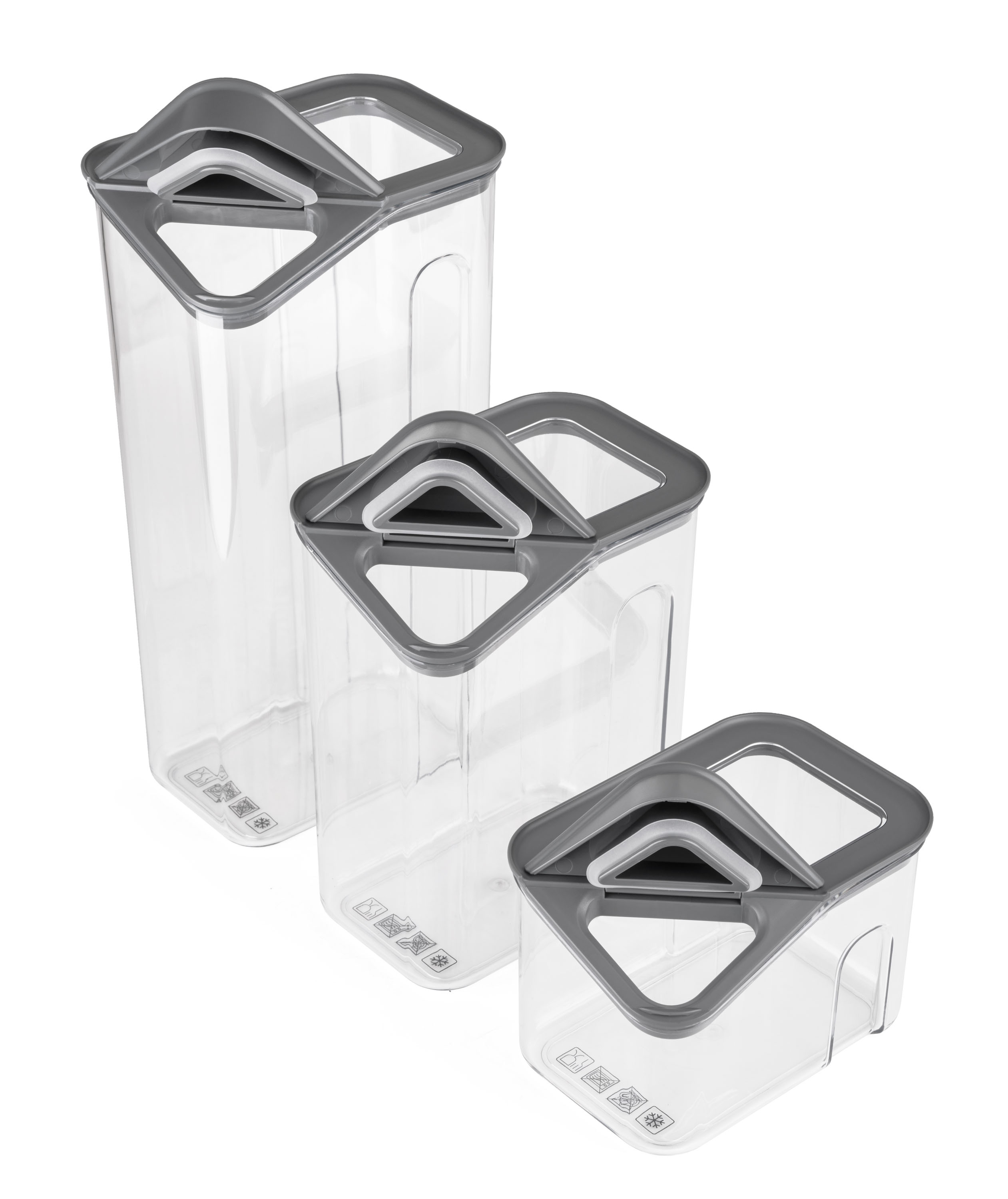 Dózy G21 oceníte při skladování mouky, těstovin, rýže i sušeného ovoce. Díky třem různým velikostem si snadno zorganizujete spíž nebo lednici podle aktuální potřeby. Vzduchotěsné víko udrží potraviny déle čerstvé, zatímco odklápěcí roh víka s násypkou umožní pohodlné a přesné vysypávání obsahu. Kvalitní plast neobsahuje BPA, proto jsou dózy 100% bezpečné pro použití s potravinami. Stohovatelný tvar oceníte v případě, že potřebujete dózy uskladnit na sebe do jedné police.
