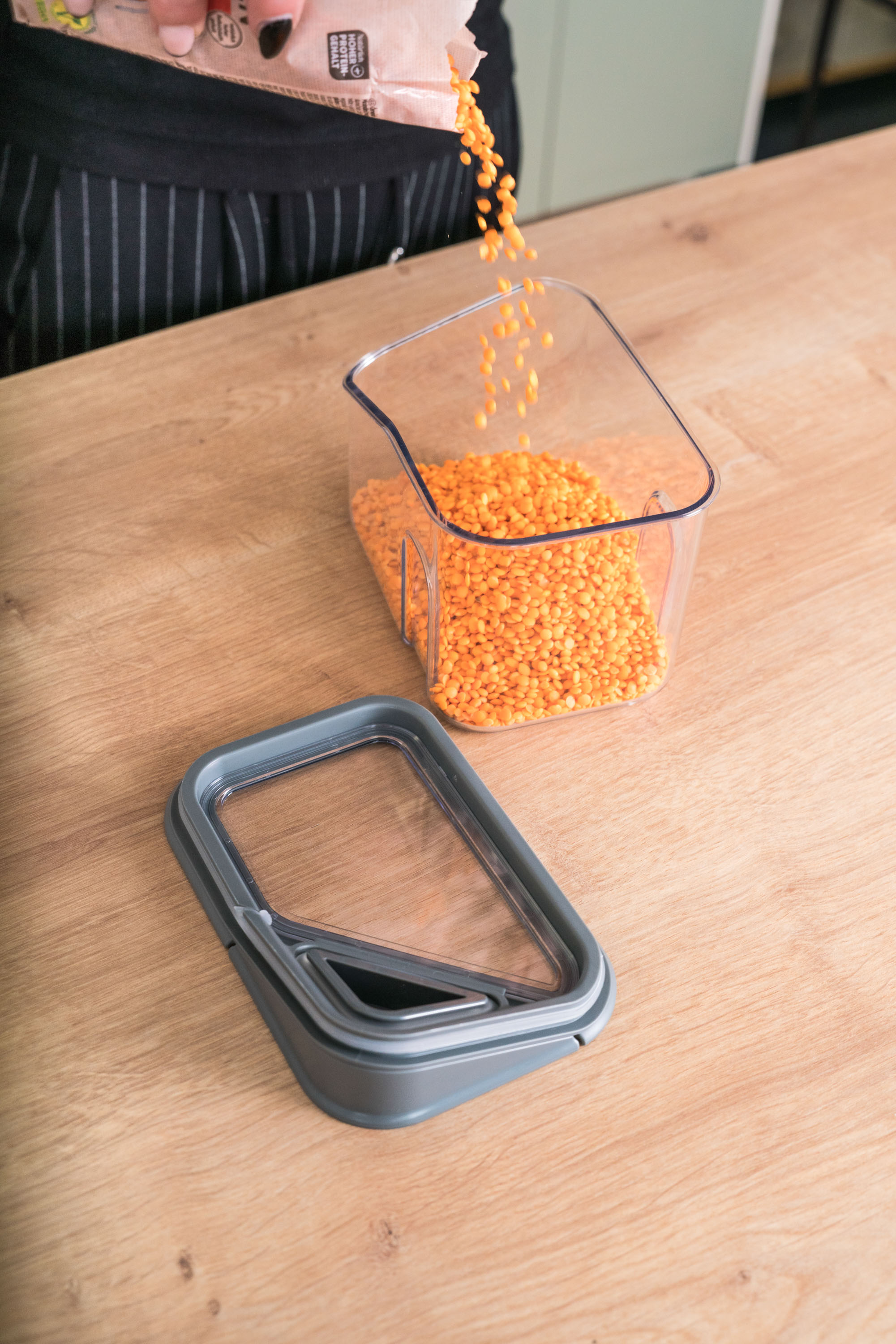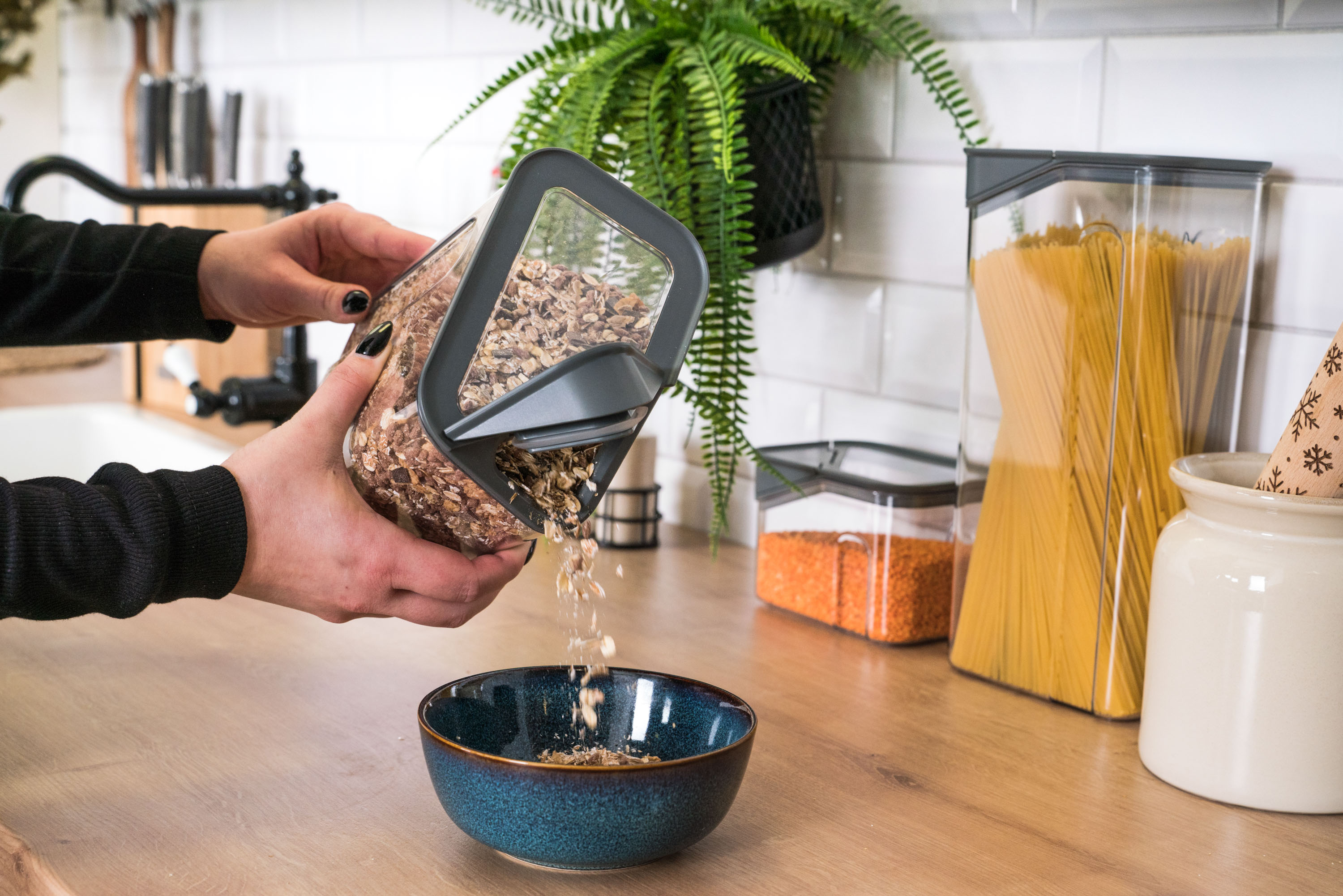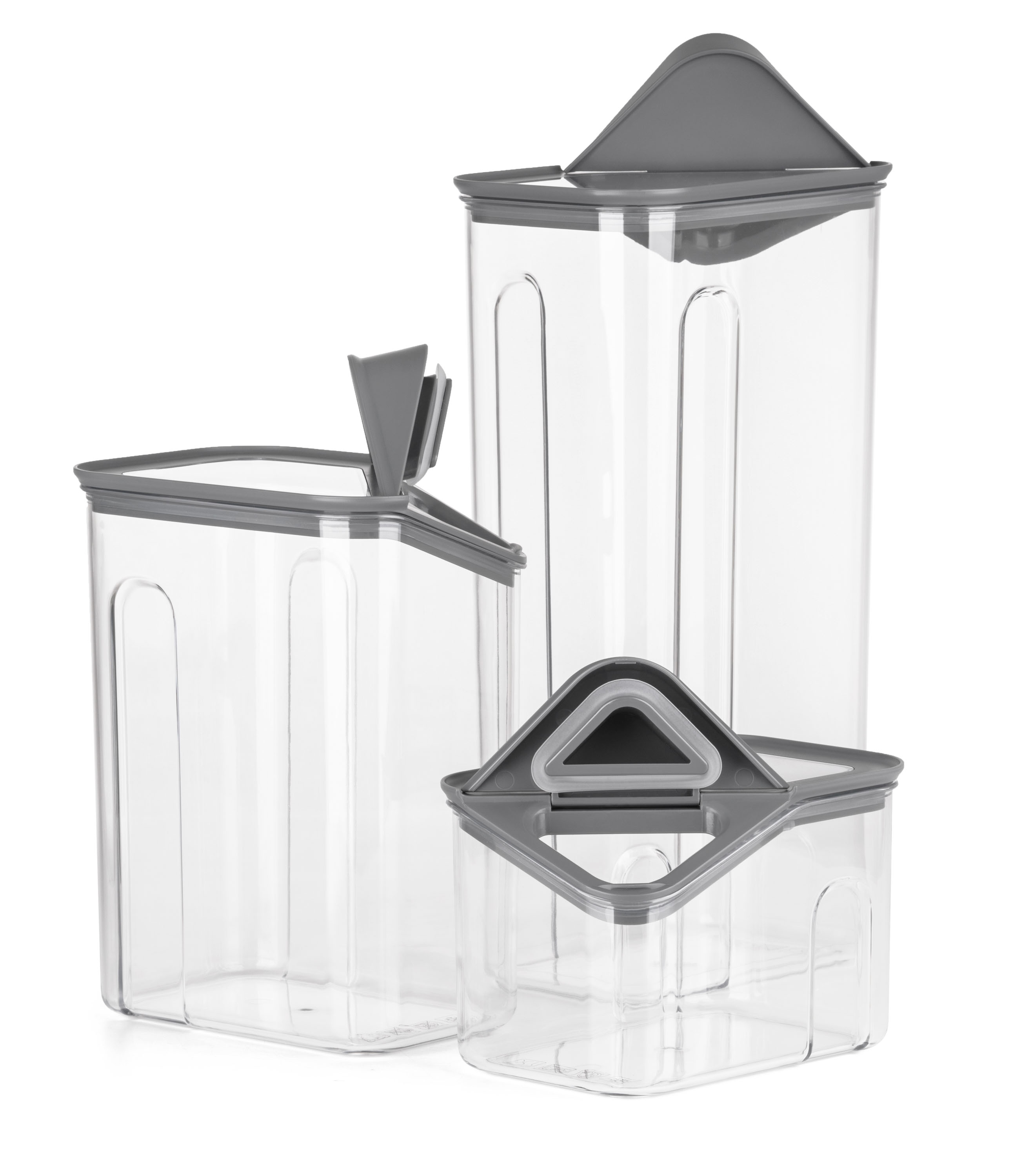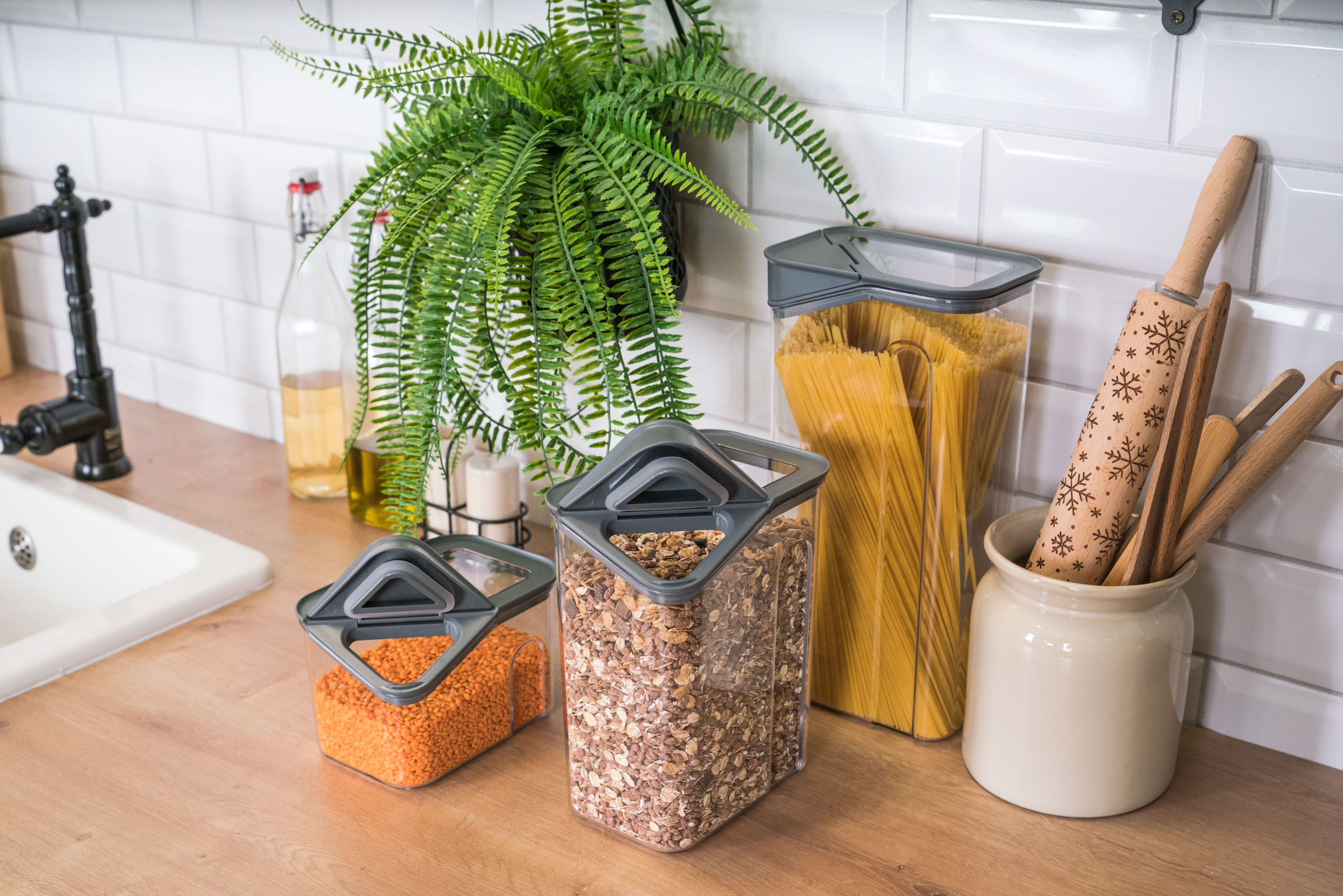 Dózy G21 oceníte při skladování mouky, těstovin, rýže i sušeného ovoce. Díky třem různým velikostem si snadno zorganizujete spíž nebo lednici podle aktuální potřeby. Vzduchotěsné víko udrží potraviny déle čerstvé, zatímco odklápěcí roh víka s násypkou umožní pohodlné a přesné vysypávání obsahu. Kvalitní plast neobsahuje BPA, proto jsou dózy 100% bezpečné pro použití s potravinami. Stohovatelný tvar oceníte v případě, že potřebujete dózy uskladnit na sebe do jedné police.