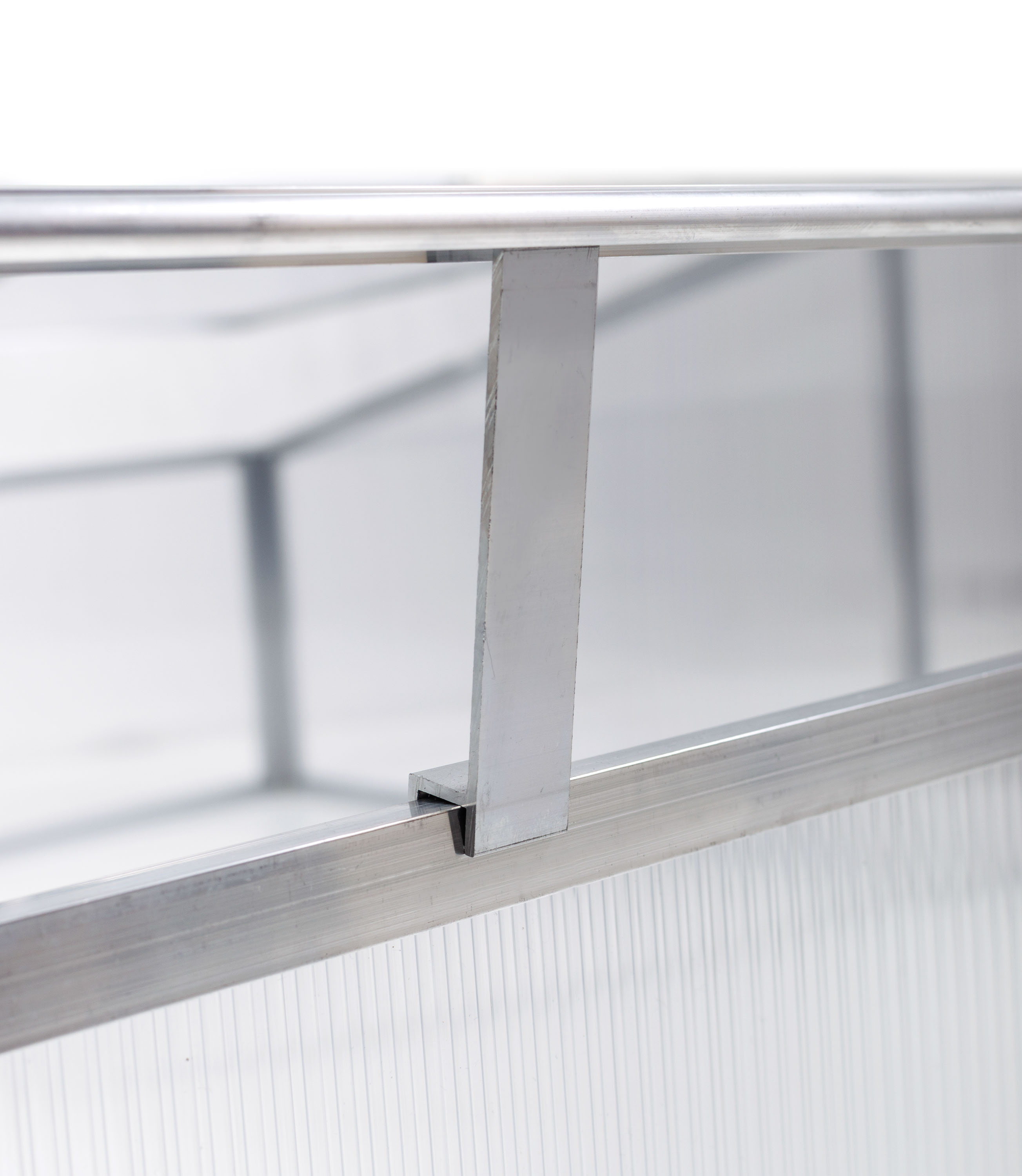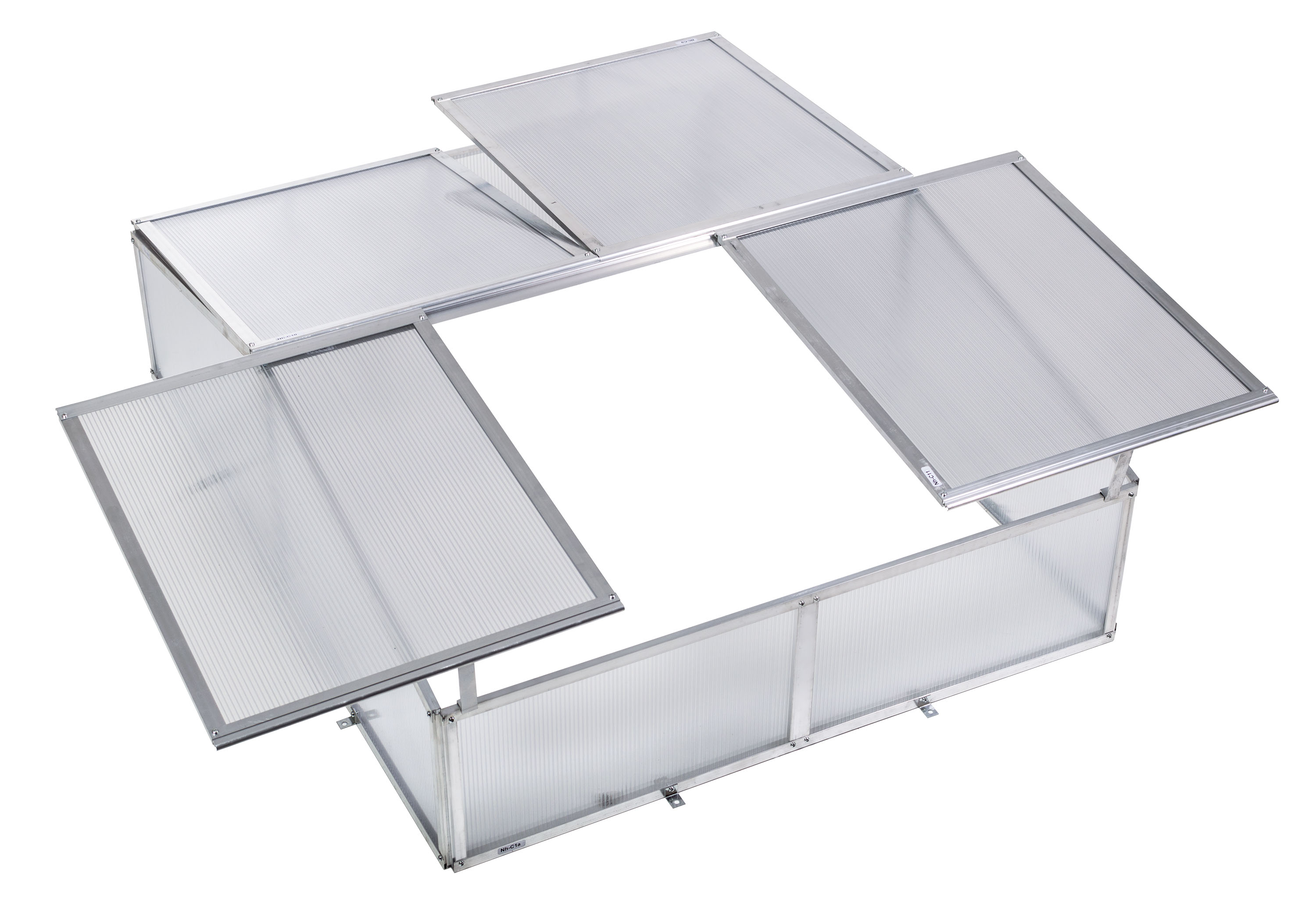Dvoudílné pařeniště je vyrobené z kvalitních dvoustěnných polykarbonátových desek o tloušťce 4 mm s UV filtrem, které zajišťují dobré proudění světla dovnitř pařeniště.