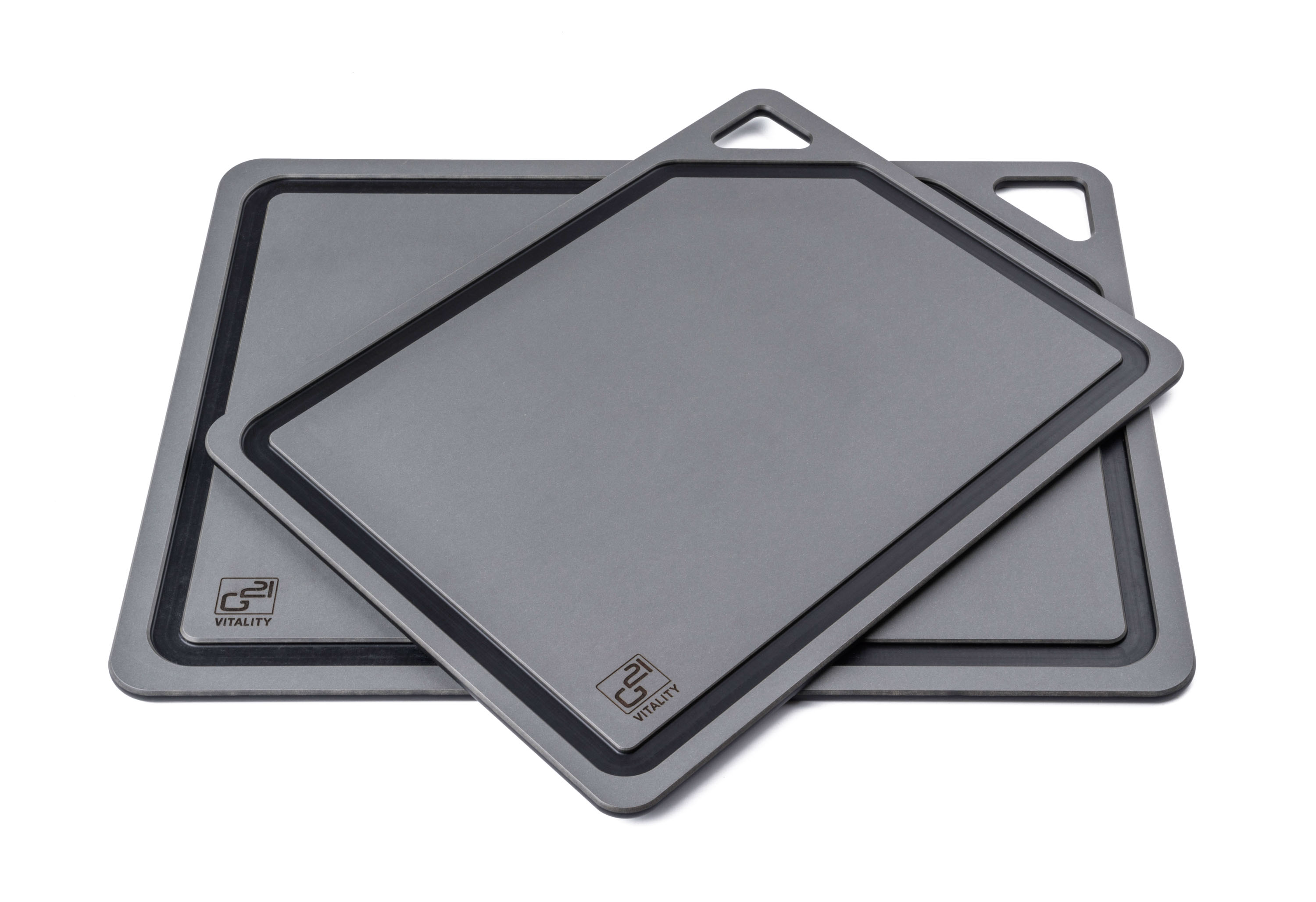 Krájecí prkénka G21 EcoCut z přírodní celulózy, sada 2 ks (30 × 23,5 cm a 37 × 27,4 cm), protiskluzová úprava. Hygienická, neporézní a odolná prkénka jsou šetrná k nožům, vhodná i do myčky.