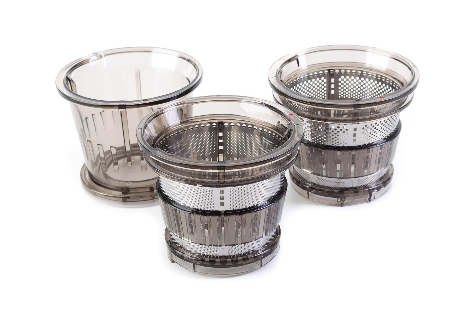 K odšťavňovači jsme vám přibalili tři síta pro různé použití. Jemné sítko pro výrobu džusu s nízkým obsahem dužiny a sítko s většími oky na hustý džus s větším obsahem dužiny. A ten třetí nástavec? To je teprve bomba! S ním si přijdou na své všichni milovníci lahodné zmrzliny. Jako bonus najdete v balení také důmyslně tvarované pěchovadlo.
