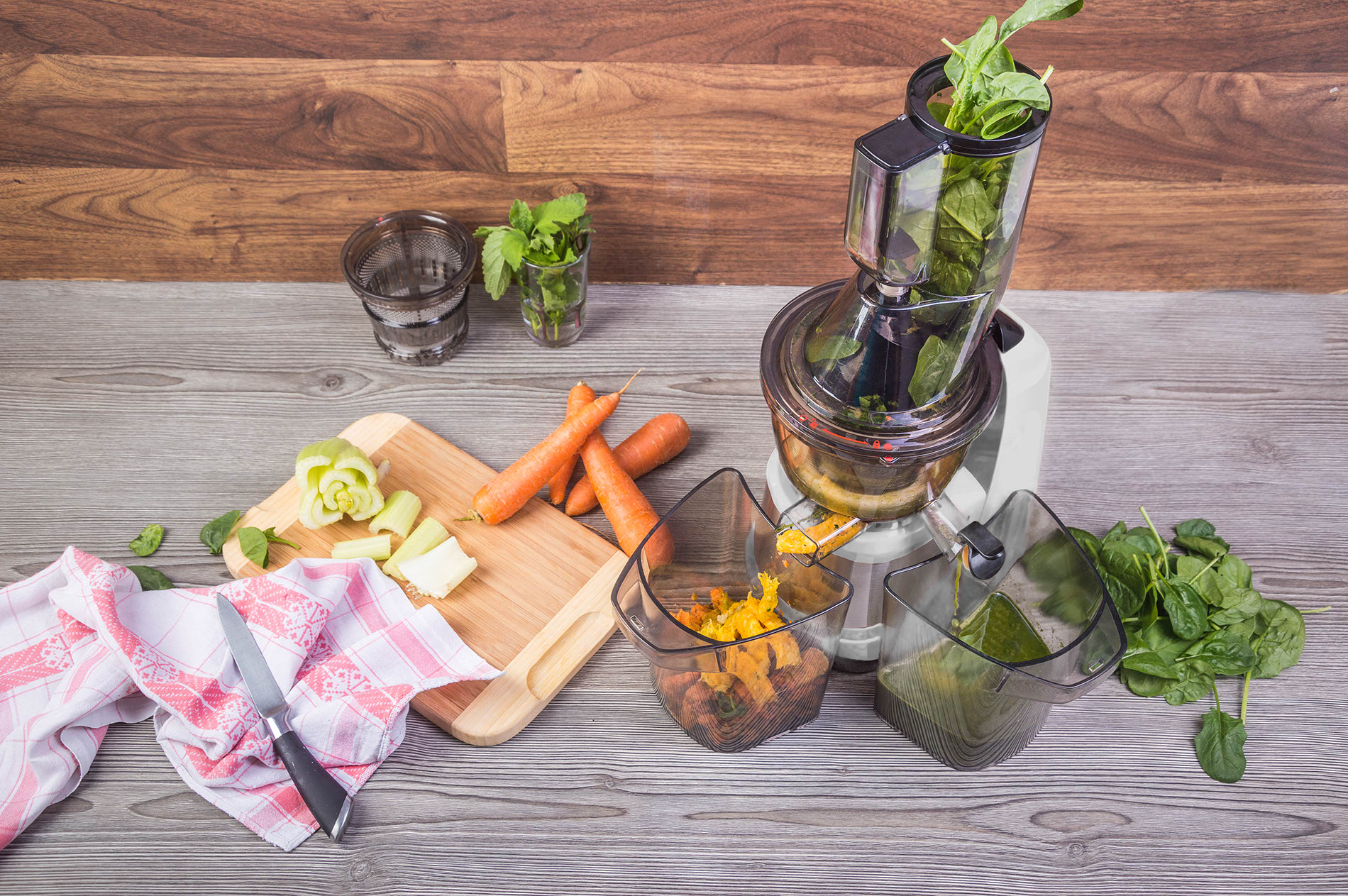 Rychlost, zdraví, žádná chemie, energetická bomba, přehled nad tím, co dáváte svému tělu. Ovocné a zeleninové šťávy jsou super svačinou, která vás nakopne. Princip odšťavňování je jednoduchý. Z ovoce a zeleniny dostanete díky výkonu 180 W a 37 otáčkám za minutu pozvolna všechnu šťávu, kterou dokonale oddělíte od pevných složek. Ve šťávě jsou zachovány všechny zdraví prospěšné látky.