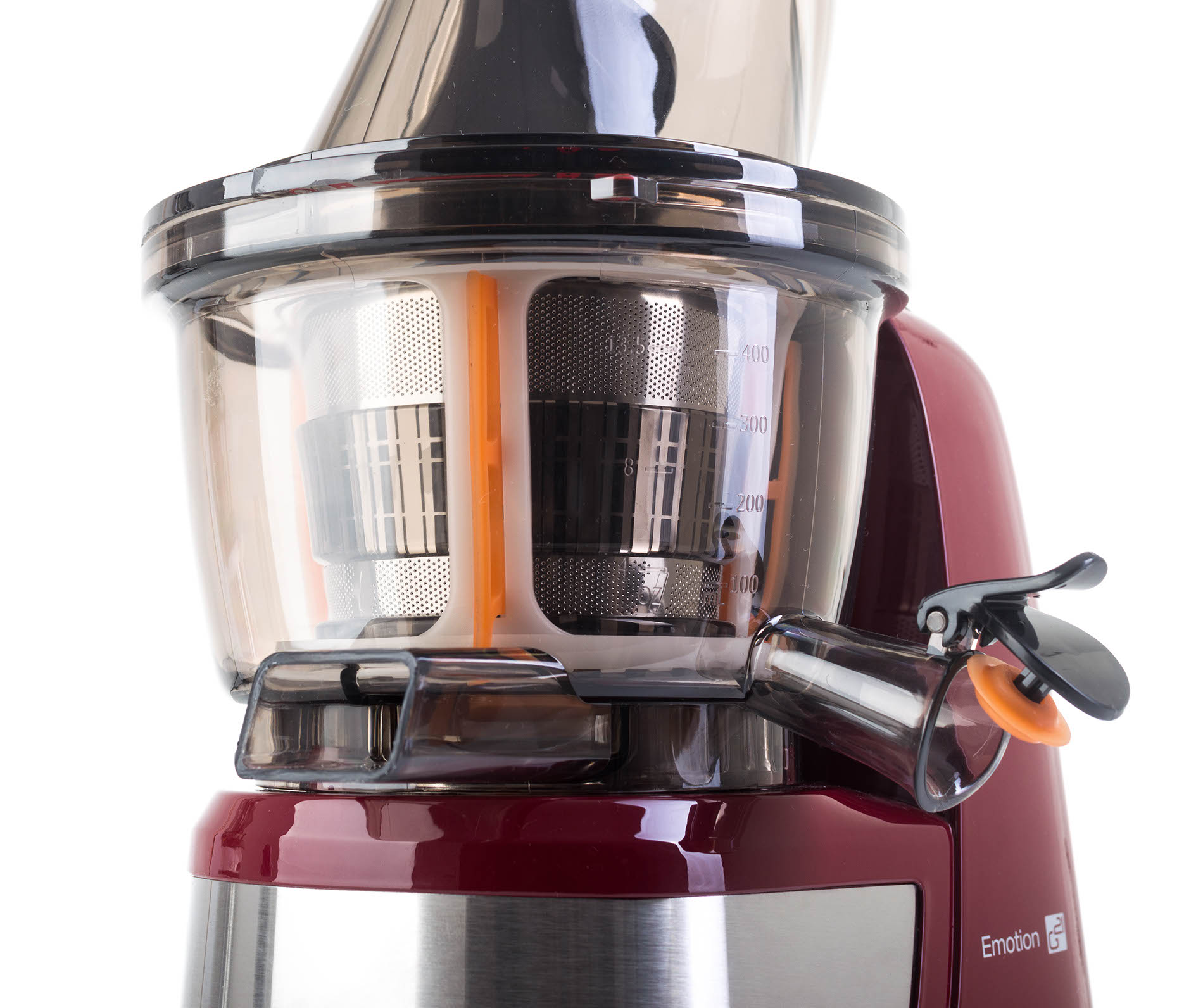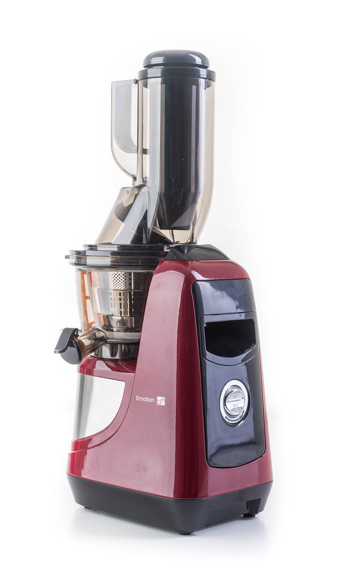 Na odšťavňovači G21 Emotion nenajdete jedinou zbytečnost. Celá obsluha spočívá v přepínání jednoho tlačítka, kterým přístroj spustíte, vypnete a přepnete na zpětný chod. Když se vám při odšťavňování zasekne kousek ovoce nebo zeleniny, nezoufejte. Přidržením tlačítka na poloze “zpětný chod” se šnek uvolní a vy můžete vesele pokračovat.