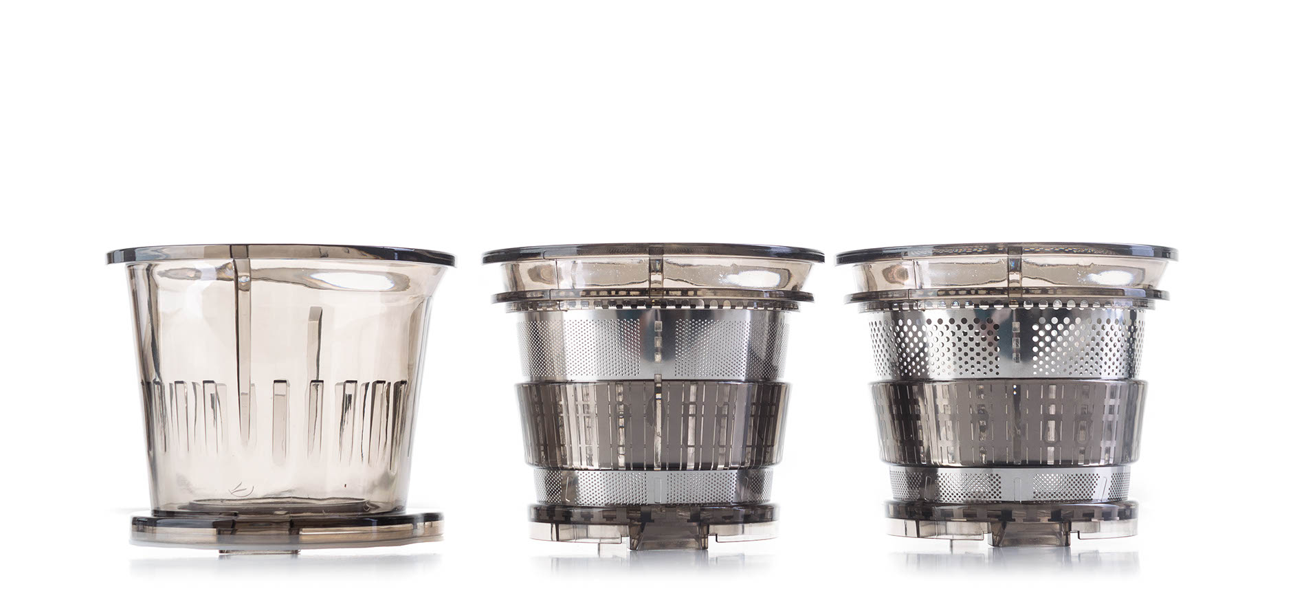 K odšťavňovači jsme vám přibalili tři síta pro různé použití. Jemné sítko pro výrobu džusu s nízkým obsahem dužiny a sítko s většími oky na hustý džus s větším obsahem dužiny. A ten třetí nástavec? To je teprve bomba! S ním si přijdou na své všichni milovníci lahodné zmrzliny. Jako bonus najdete v balení také důmyslně tvarované pěchovadlo.
