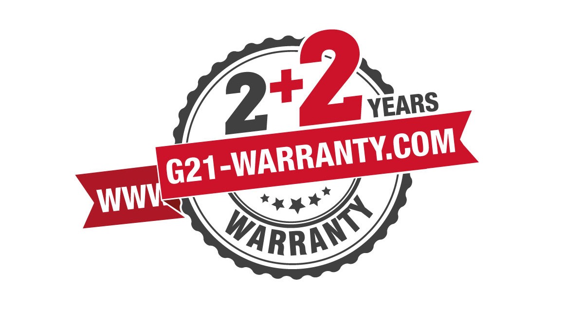Na nejdůležitější část mixéru - tělo s elektronikou a motorem - máte dokonce čtyřletou záruku. Díky prvotřídním materiálům a promyšlenému zpracování trupu blenderu jsme si kvalitou jisti. Prodlouženou záruku získáte registrací na webu http://g21-warranty.com/registration. Využijte tuto možnost a po koupi se zaregistrujte. Prodloužená záruka 2 + 2 roky se vyplatí!