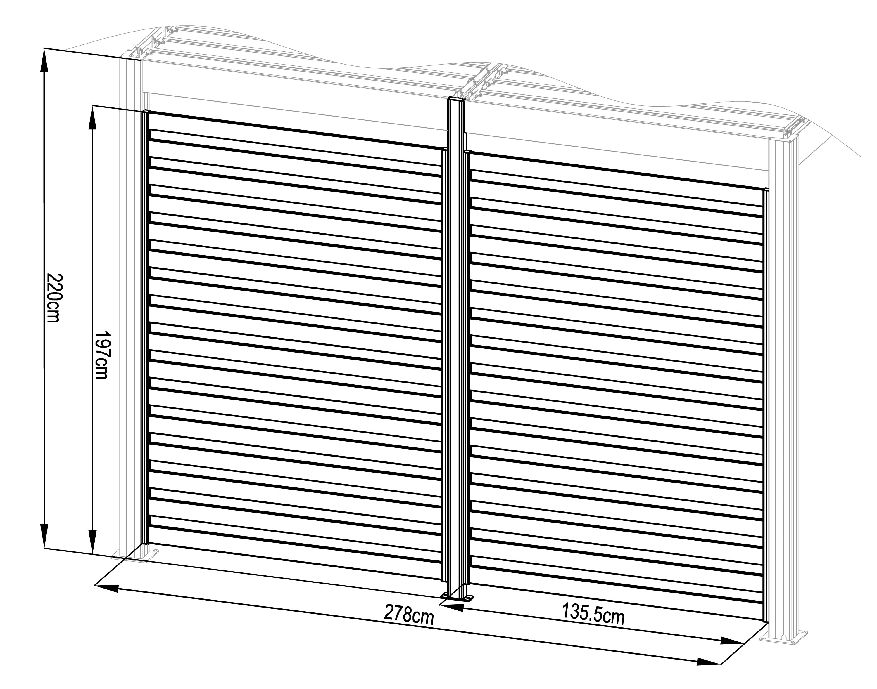 Boční stěna z pozinkovaných lamel pro větší soukromí i ochranu před větrem, deštěm či sluncem. Stabilní konstrukce z kvalitního hliníku, snadná instalace.