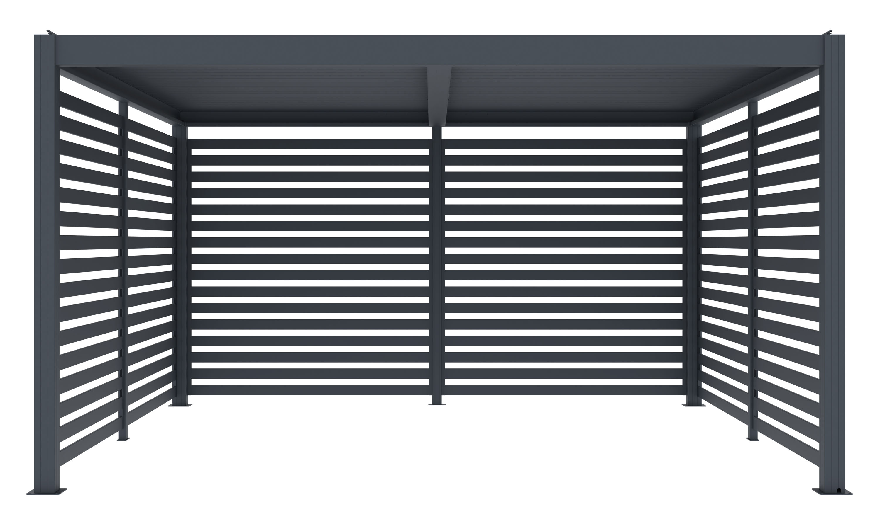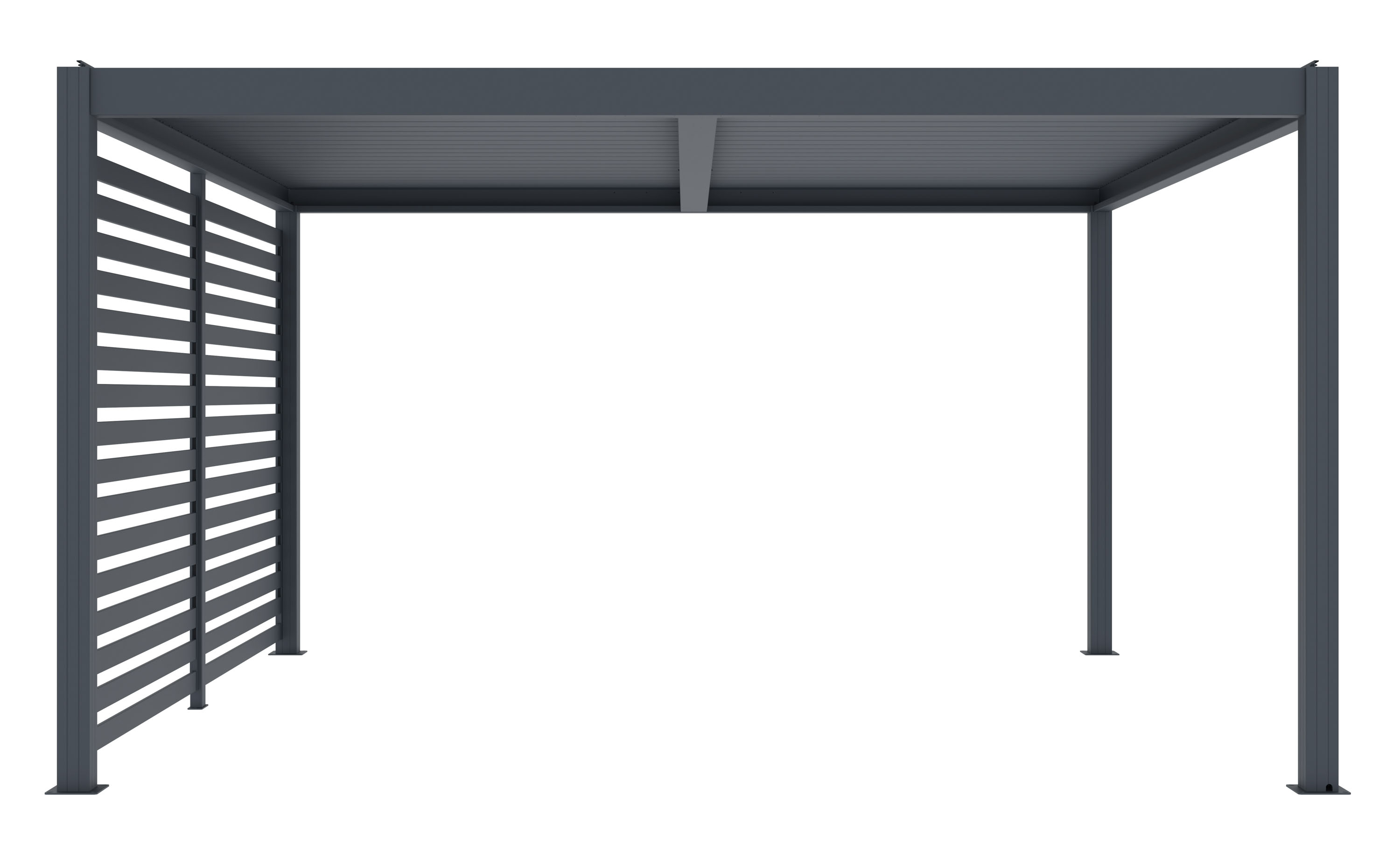 Boční stěna z pozinkovaných lamel pro větší soukromí i ochranu před větrem, deštěm či sluncem. Stabilní konstrukce z kvalitního hliníku, snadná instalace.