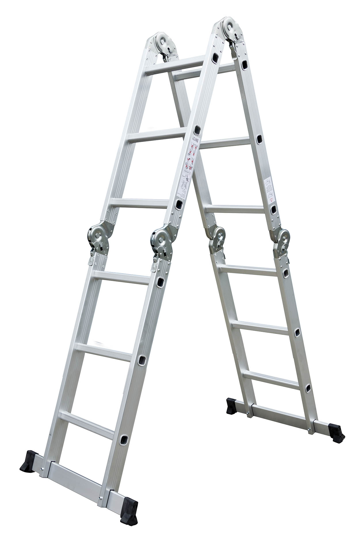 Hliníkové štafle můžete využít jednak jako dlouhý žebřík v délce až 3,7 m. Další variantou je možnost sestavit štafle jako přenosné lešení. Díky konstrukci s klouby lze štafle snadno umístit přes hřeben střechy.